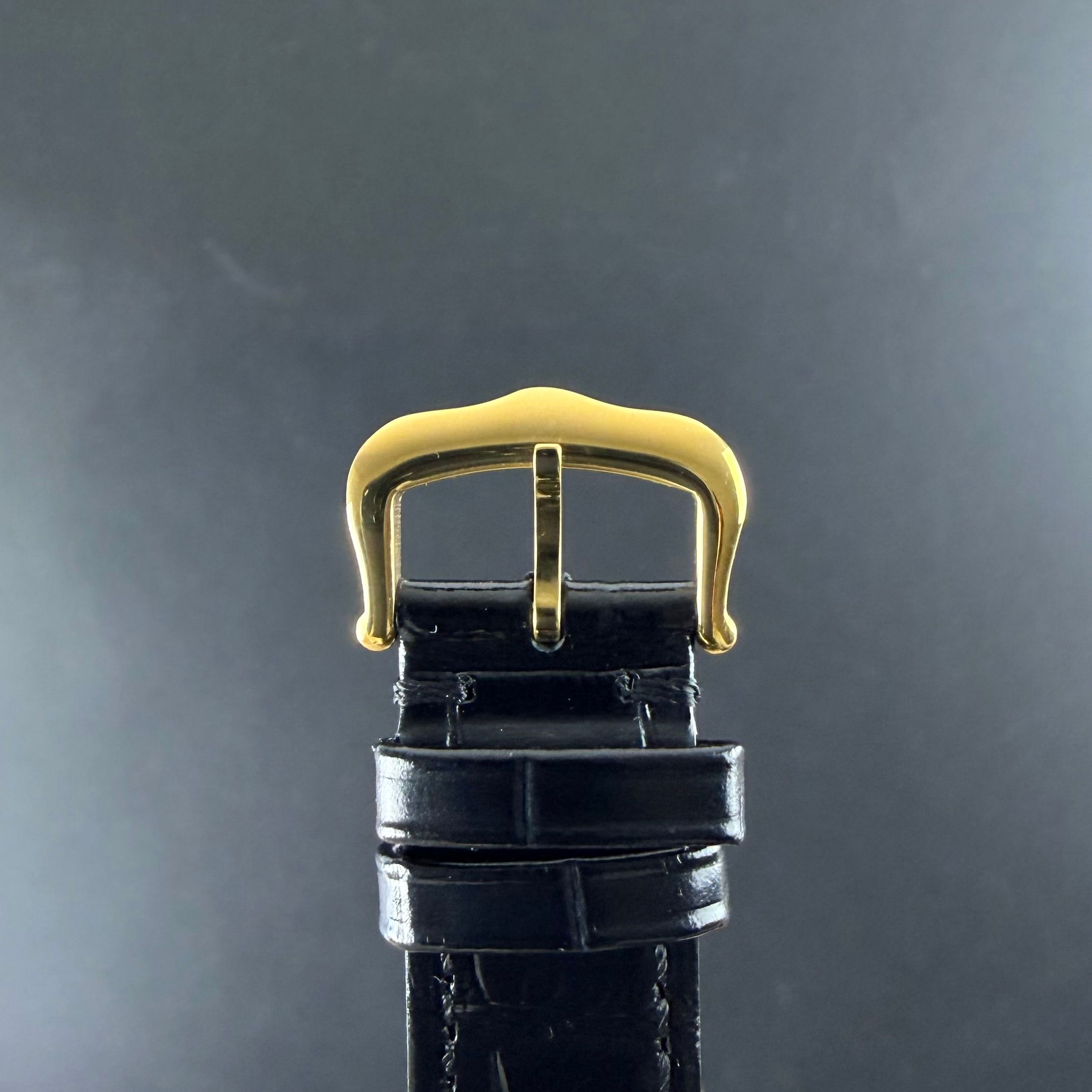 A black calf leather strap with crocodile grain and light glossy finish. Made in France. (Fits a 11,5 to 19,5cm wrist)