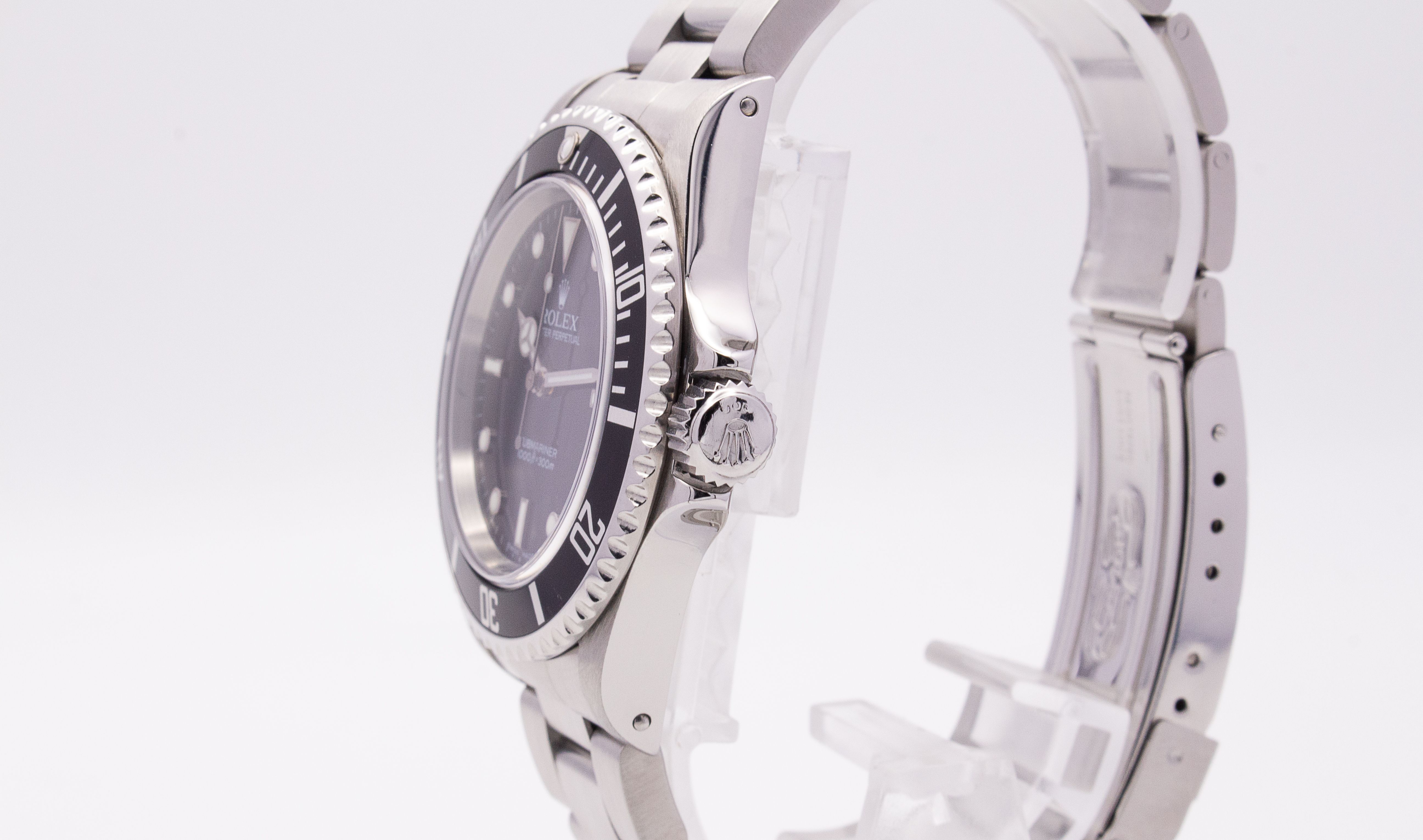 Zum Verkauf steht eine Rolex Submariner No Date, Referenz 14060M, in herausragendem Zustand mit frisch durchgeführtem Service.Das 40-mm-Gehäuse der Z-Serie (Baujahr 2006) präsentiert sich in exzellentem, originalgetreuen Zustand. Die Geometrie ist vollständig erhalten, die Schliffe an den Hörnern sind klar definiert, die Kanten sehr scharf – keine rundpolierten Übergänge. Auch die Lünette ist außergewöhnlich gut erhalten; lediglich minimale, unvermeidbare Tragespuren sind vorhanden.