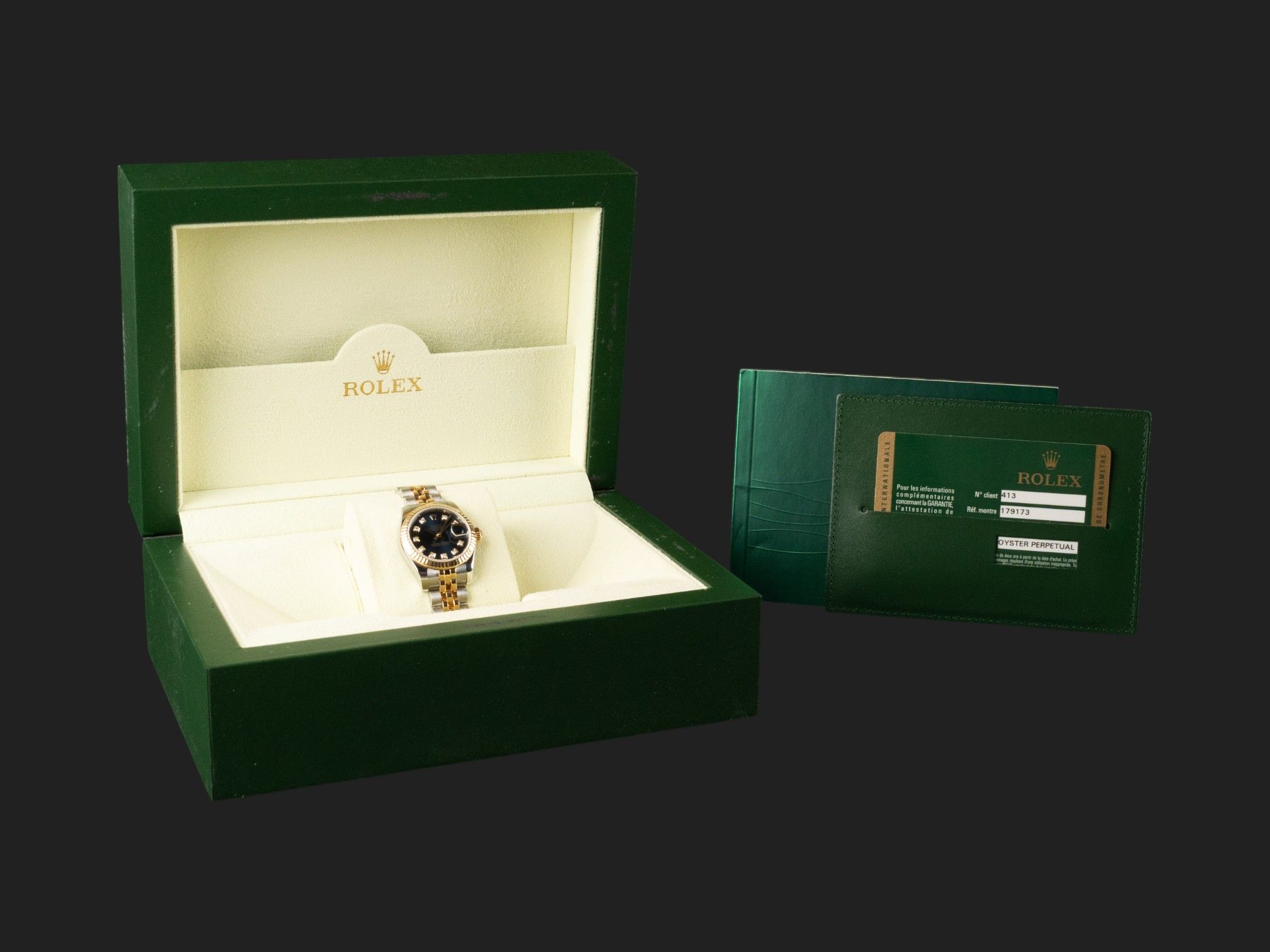 Dial colour is blue with diamond index.Originally sold by Rolex 08/2012, LC413 (South-Korea).