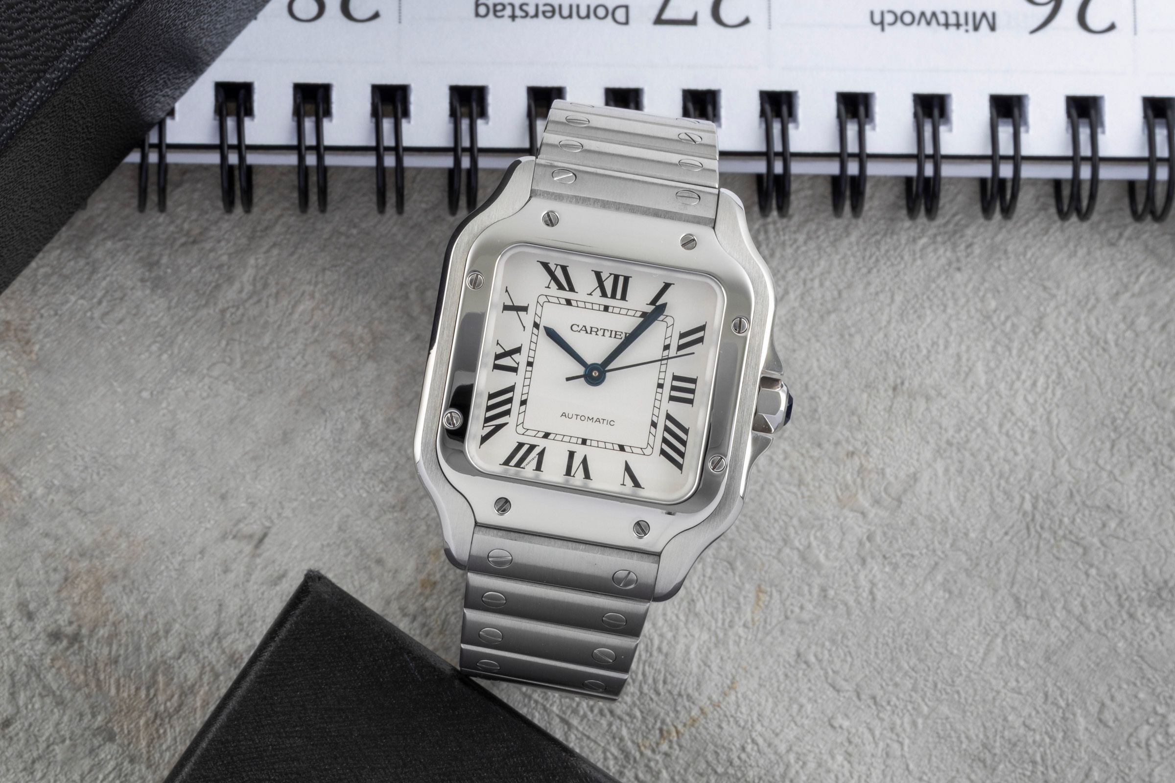 Alternative title: Cartier WSSA0010 - Santos; Cartier Santos Stahl Automatik Herrenuhr Medium WSSA0010 B&P 2018 VP: 8850,- € [2506665]