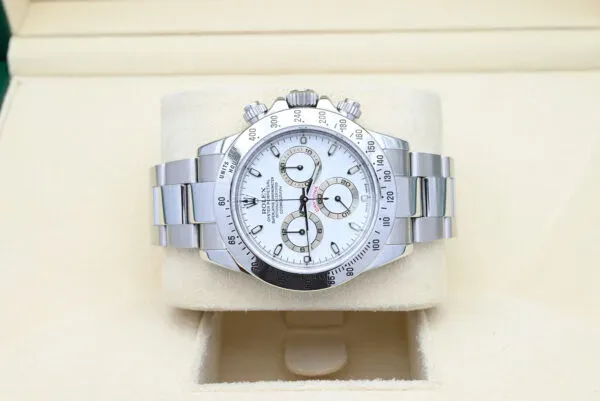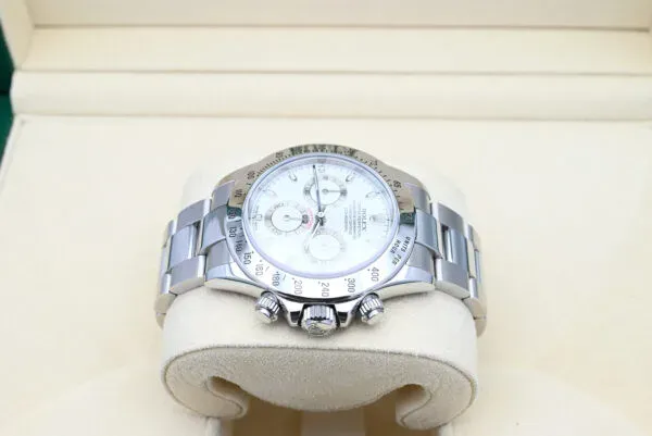Rolex Daytona 116520 from 2004 in excellent condition, comes complete with the full set and Rolex service card.All of our watches have been thoroughly checked by our own watchmaker and serviced when needed.