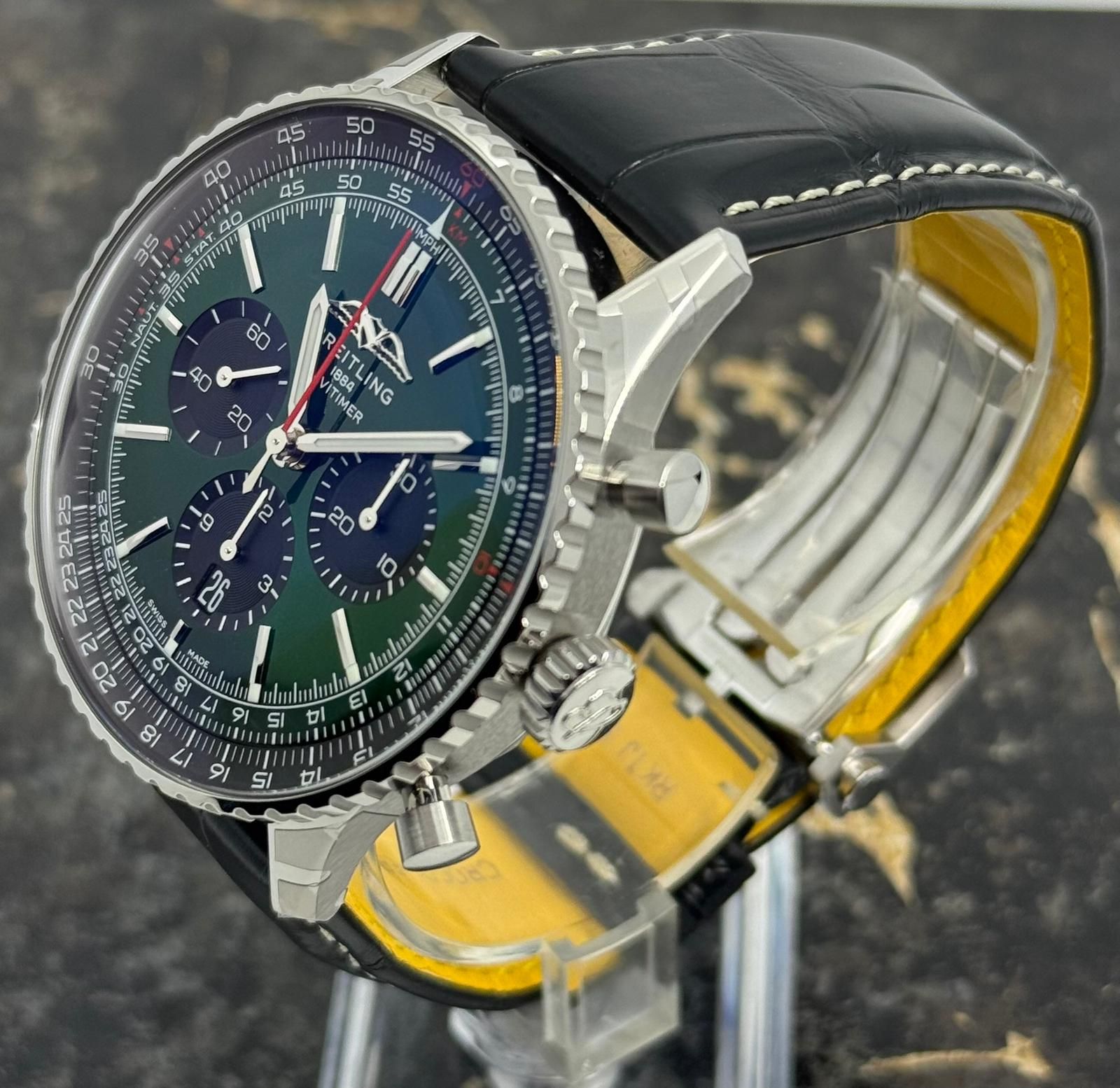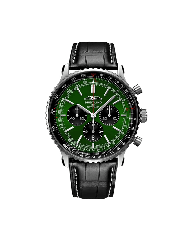 Breitling Navitimer B01 Chronograph 46mm - Green Dial - Black Leather Strap - AB0137241L1P1 - New 2025
