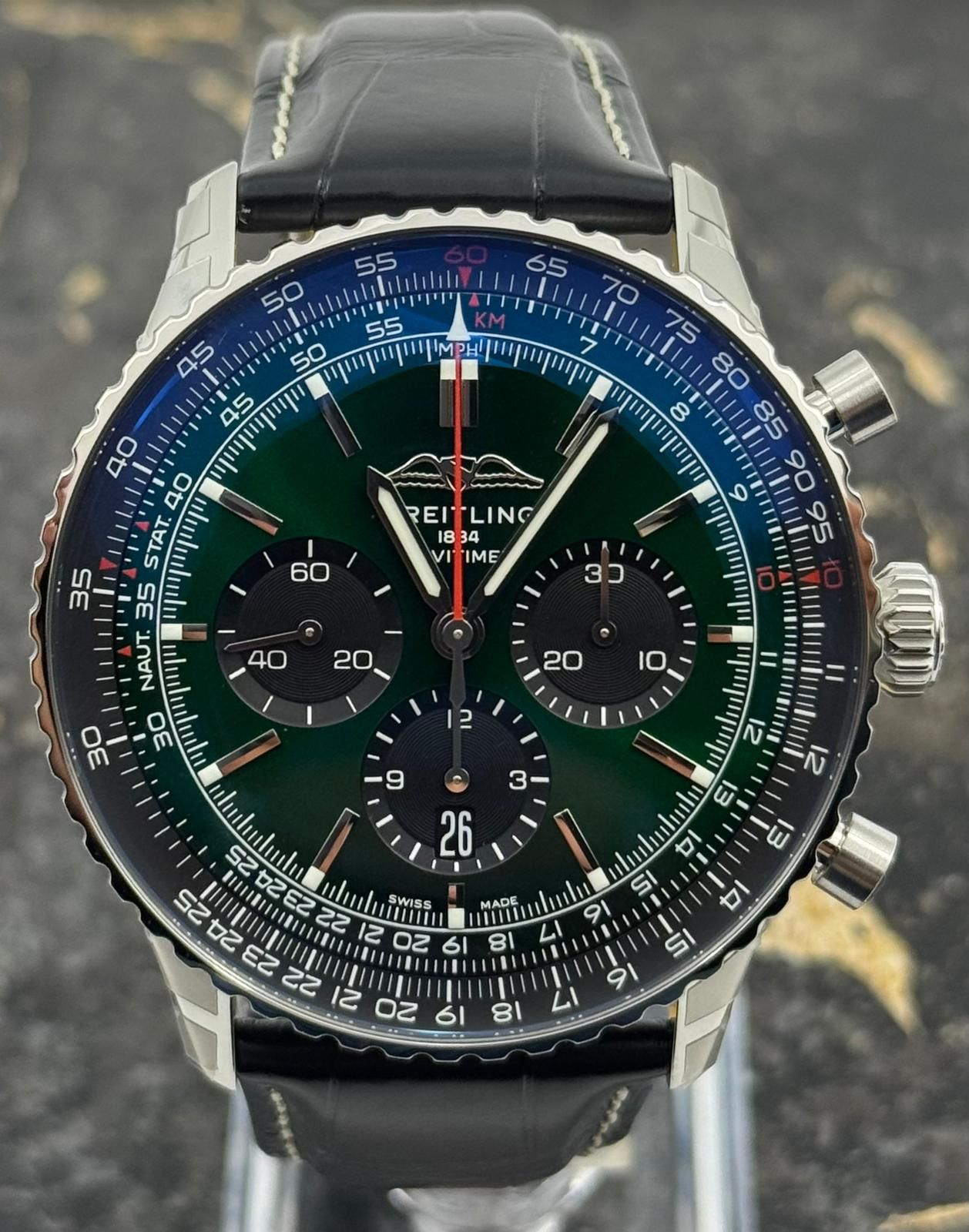 Breitling Navitimer 01 (46 MM) Breitling Navitimer B01 Chronograph 46mm - Green Dial - Black Leather Strap - AB0137241L1P1 - New 2025