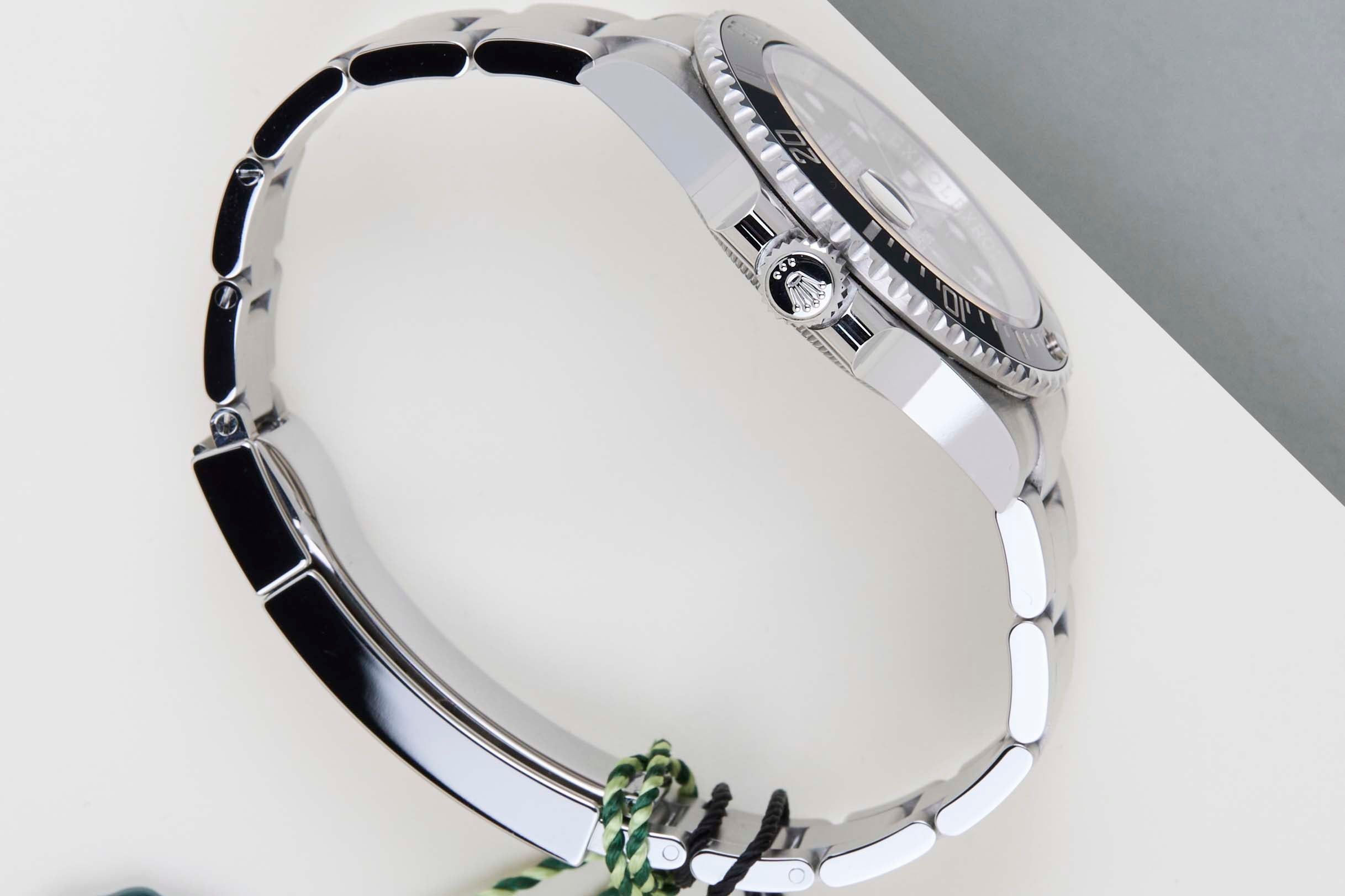 Dit Rolex Submariner Date werd voor het eerst verkocht in januari 2025. Het horloge is volledig gemaakt van roestvrij staal. Rolex gebruikt 904L in zijn stalen horloges, wat een extreem resistente en hoogglanzend superlegering is. Dit Rolex-horloge is uitgerust met een Chromalight wijzerplaat die te herkennen is aan de blauwe luminescentie. Deze Submariner Date komt met een zwarte wijzerplaat en bezel, die kan worden afgeleid van de referentie 126610LN, Lunette Noir.