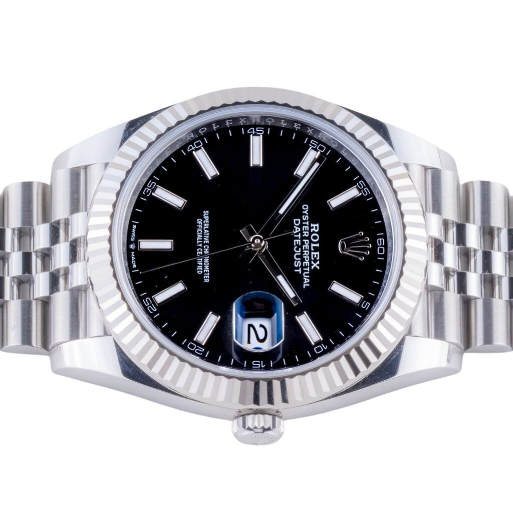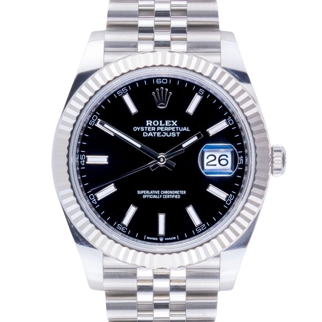 Rolex Oyster Perpetual Datejust referentie 126334 uit 2025 inclusief volledige set. De Datejust 126334 heeft een 41mm kast van roestvrij staal, een roestvrijstalen (904L) Oyster armband met Oysterclasp en een gefluteerde bezel van 18K witgoud. Deze Datejust 126334 beschikt over een automatisch uurwerk caliber 3235 met een snelle datumfunctie, een krasbestendig saffierglas en een zwarte wijzerplaat.