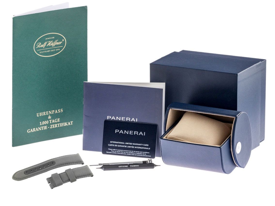 Behuizing van geborsteld staal, behuizingsdiameter zonder kroon 44mm, behuizingshoogte 13,5mm. Lünette van geborsteld staal met 60-minuten schaal, eenzijdig draaibaar. Panerai armband van zwart Kautschuk, aanzetbreedte 24mm, Panerai pin-buckle van staal met fabrikantlogo. Wijzerplaat zwart met opgezette luminescerende indexen en luminescerende wijzers van staal. Uurwerk automatisch, manufactuurkaliber OP P.900 met 23 edelstenen, gangreserve van ongeveer 72 uur. Weergave van uur en minuut via centrale wijzers, kleine seconde op 9 uur, datumaanduiding met snelle instelling op 3 uur. Saffierglas krasbestendig. Kroon met gepatenteerde Panerai beschermbeugel. Achterkant van staal, geschroefd en gegraveerd. Gewicht van het horloge inclusief armband 145g. Waterdicht tot 30 ATM. Referentienummer: PAM01229, ID: ST1160146640126H-10100, artikelnummer: 10000084416. Originele Panerai doos met omdoos en garantiepapieren van januari 2026, evenals beschrijving, lunettebescherming, verwisselarmband en bandwisselgereedschap, Full Set. Ongebruikt. Leveringstijd onmiddellijk.