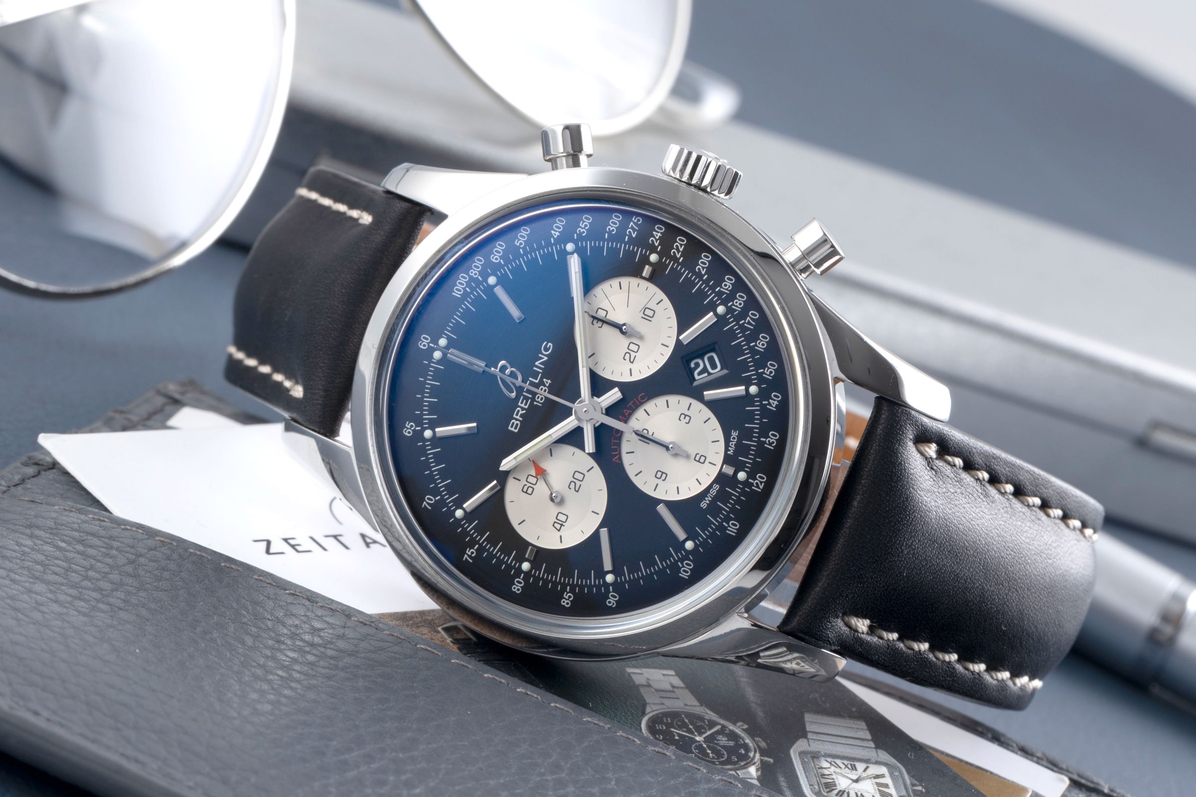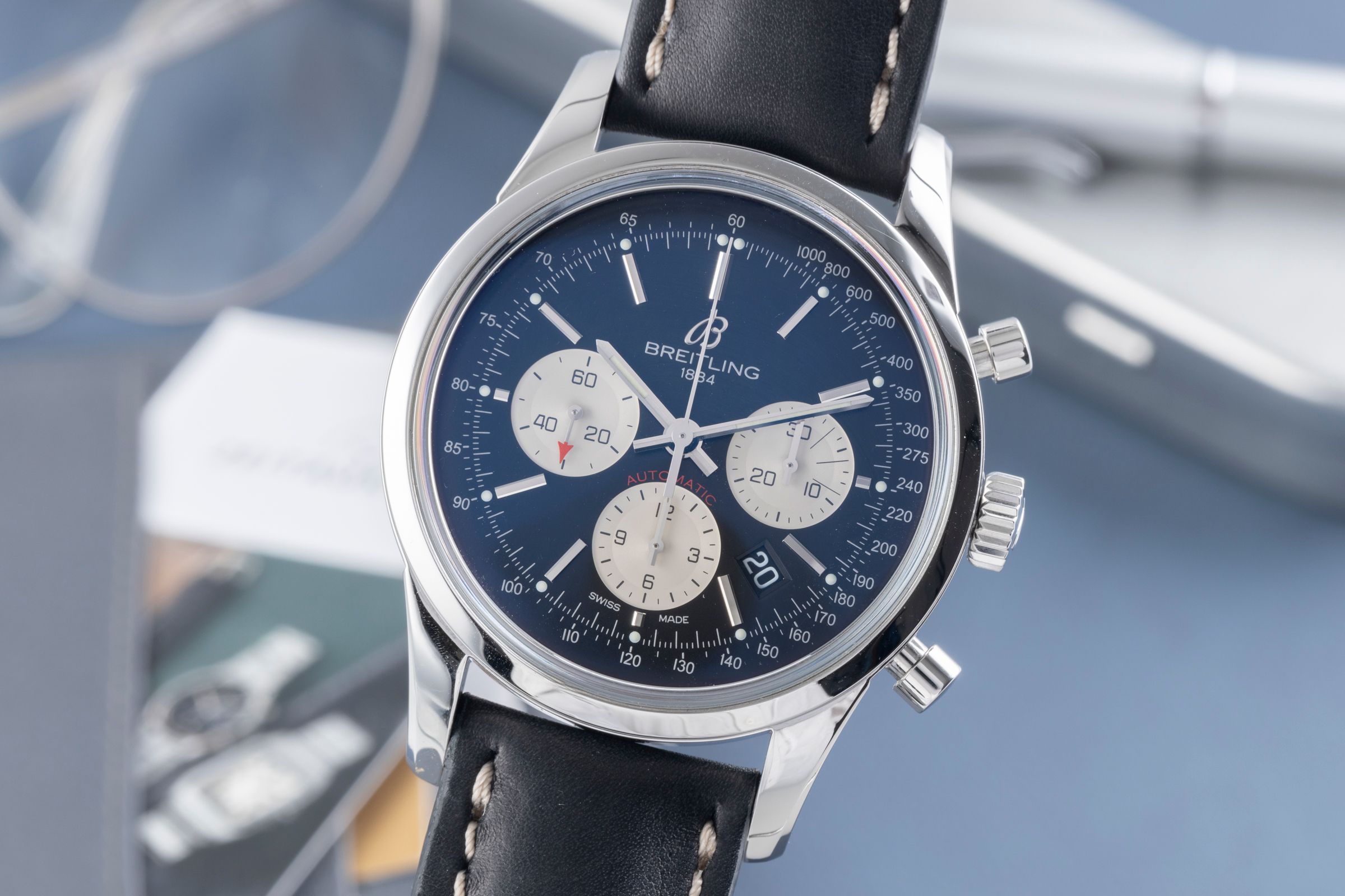 Accessories: Original Breitling box as pictured, Original papers as pictured, Booklets as pictured