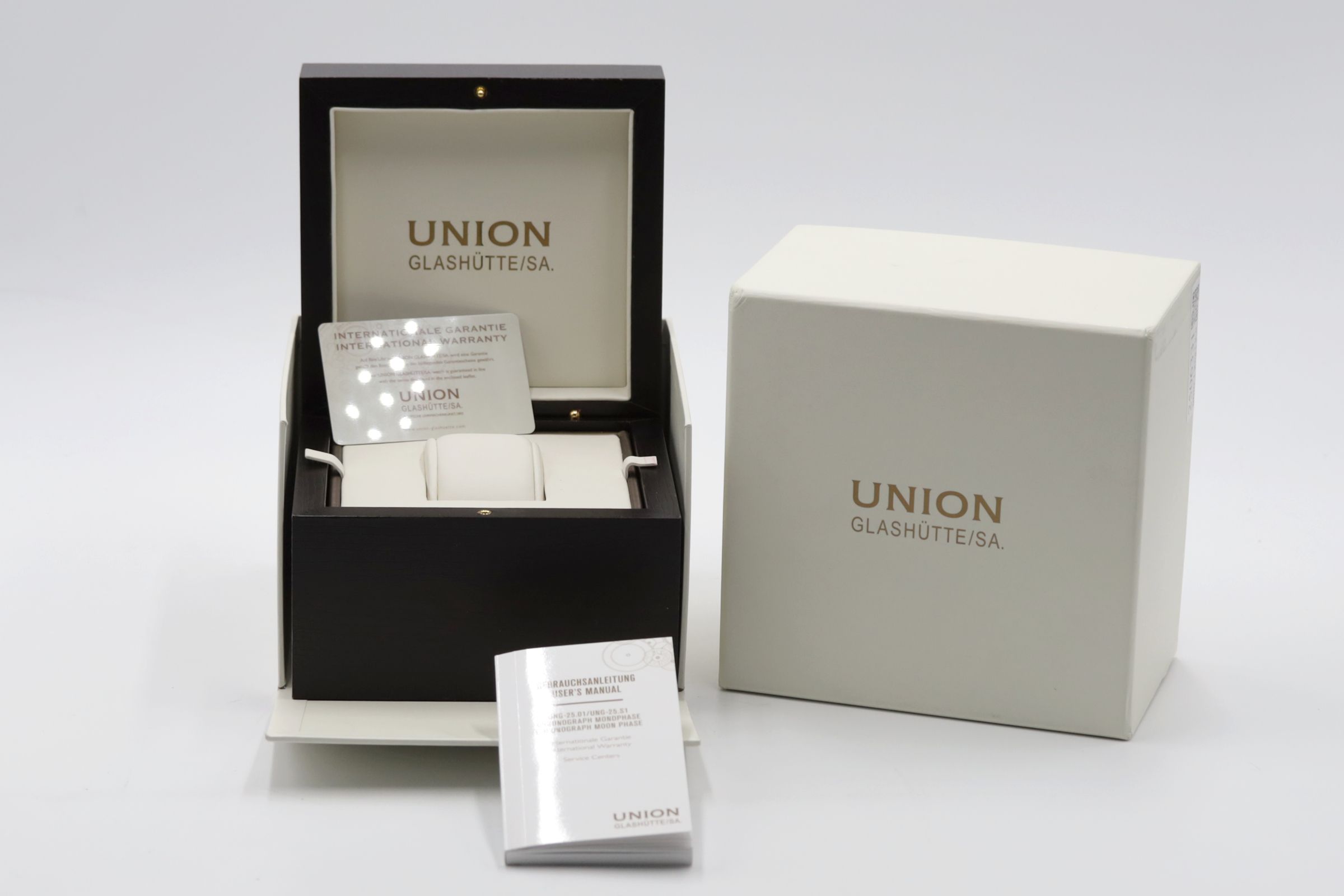 Accessoires: Originele Union Glashütte doos zoals afgebeeld, Originele papieren zoals afgebeeld, Boekjes zoals afgebeeld