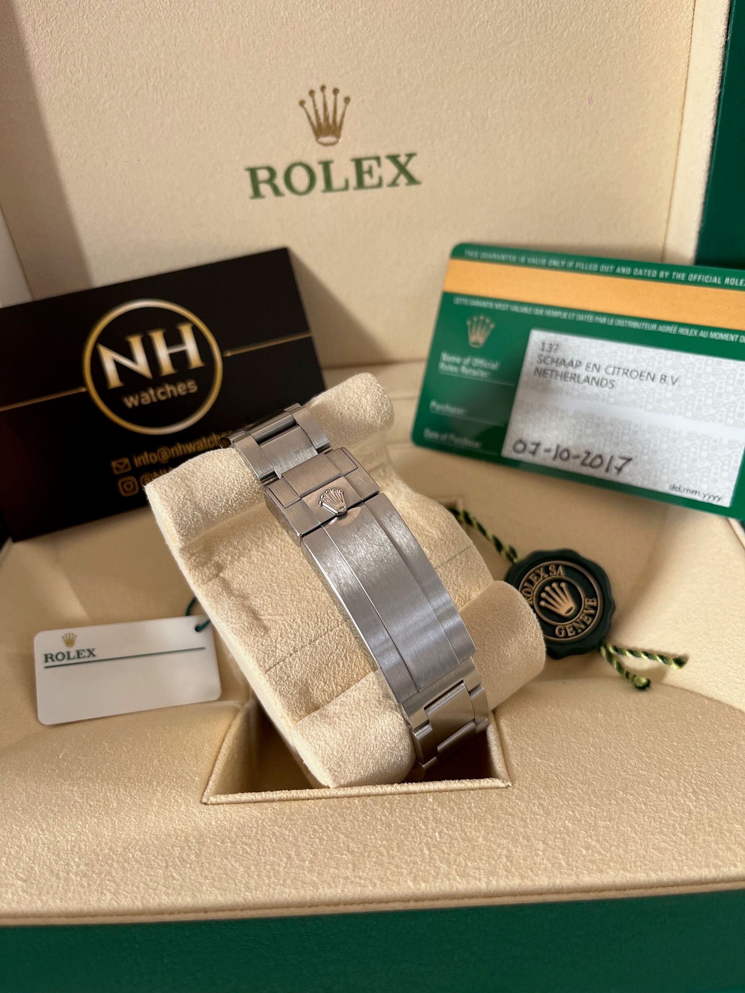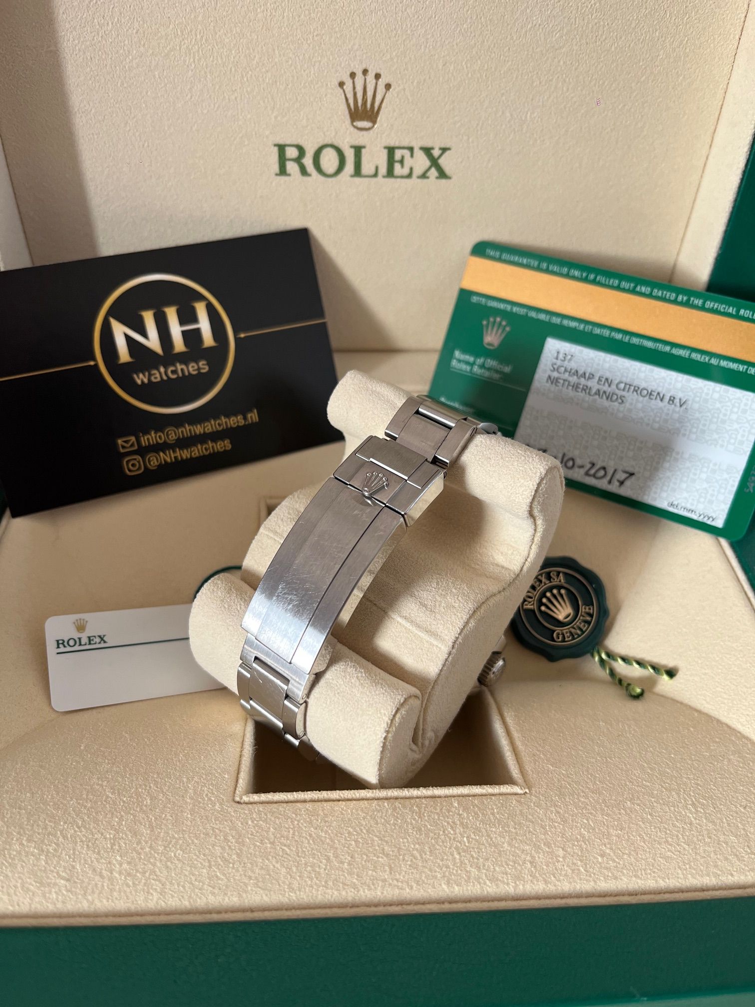 Toebehoren: Full set, doos, papieren, garantiekaart en factuur vanuit NHwatches op uw eigen naam.