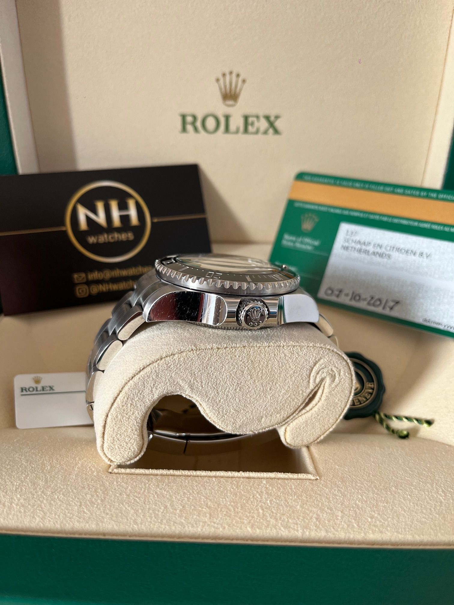 Toebehoren: Full set, Doos, papieren, garantiekaart en factuur vanuit NHwatches op uw eigen naam.