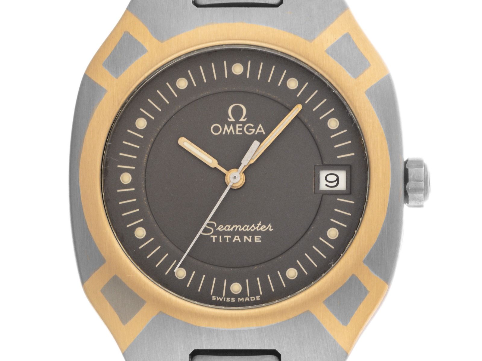 Omega Seamaster Polaris Titan 18kt Gelbgold Quarz Armband Titan Gehäuse Titan satiniert, Gehäusemaße ohne Krone (L x B x H) 35,3 x 31 x 6,8mm. Lünette Titan mit 18kt Gelbgold Intarsien, satiniert. Armband Titan satiniert, Sicherheitsfaltschließe Titan mit Hersteller-Logo. Zifferblatt grau, Punktindexen und gelbgoldenen Zeigern. Uhrwerk quarzgesteuert, Kaliber Omega 1438 mit 6 Edelsteinen. Anzeige von Stunde, Minute und Sekunde über Zeiger aus der Mitte mit Sekundenstopp zur sekundengenauen Einstellung der Uhrzeit, Datumsanzeige bei 3 Uhr. Saphirglas kratzfest. Krone mit Hersteller-Logo. Boden Titan graviert. Gewicht der Uhr inklusive Armband 63g, Länge des Armbandes inklusive Gehäuse 175mm. Referenznummer: 3961100.1, Baujahr: 1989, Gehäusenummer: 51116XXX, ID: P233315420126H-3150, Artikelnummer: 10000084364. Mit Gangkontrolle, neuer Batterie und kompletter äußerlicher Aufarbeitung von Januar 2026. Original Omega Box mit Umkarton und Erstkaufrechnung sowie Watchregister Auszug von Januar 2026, The Watch Register Zertifikat / ohne Eintrag (Internationale Datenbank für verlorene oder gestohlene Uhren). Superschnäppchen, Kapitalanlage mit Wertsteigerungspotential, sehr seltenes Sammlerstück. Sehr guter Zustand. Lieferzeit sofort. Lieferzeit sofort. Inklusive certified pre owned Siegel / Uhrenpass mit einem Farbbild, der genauen Beschreibung sowie dem Wiederbeschaffungswert der Uhr über 3150,-€ und 1000 Tage Garantie ab Kaufdatum.