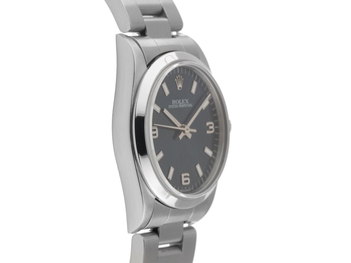 Behuizing van gepolijst en gesatineerd staal, behuizingsdiameter zonder kroon 31mm, behuizingshoogte 10,1mm. Lünette van glad en gepolijst staal. Armband Oyster van gesatineerd staal, vouwsluiting van staal met fabrikantlogo. Wijzerplaat blauw met "T SWISS Made T" opdruk bij 6 uur, evenals opgezette indexen van witgoud, Arabische cijfers en witgouden wijzers. Automatisch uurwerk, chronometer met certificaat, Rolex manufaktuurkaliber 2130 met 29 edelstenen. Weergave van uur, minuut en seconde via centrale wijzers met seconde-stop voor nauwkeurige tijdinstelling. Saffierglas, krasbestendig. Schroefkroon met fabrikantlogo. Achterkant van staal, geschroefd. Gewicht van het horloge inclusief armband 72g, lengte van de armband inclusief behuizing 165mm. Referentienummer: 67480, behuizingsnummer: U615XXX, ID: KA177588120126H-7500, artikelnummer: 10000084399. Met gangcontrole en volledige uiterlijke opfrissing van januari 2026. Originele Rolex doos met omdoos en garantiepapieren van augustus 1998, LC 400 / Hong Kong, beschrijving, lederen etui, Rolex chronometerzegel, vertaalboekje en uittreksel van het Watch Register van januari 2026, The Watch Register certificaat / zonder vermelding (Internationale database voor verloren of gestolen horloges), Full Set. Superschnäppchen, zeer zeldzaam verzamelobject, bijna niet gedragen. Zeer goede staat. Leveringstijd direct.