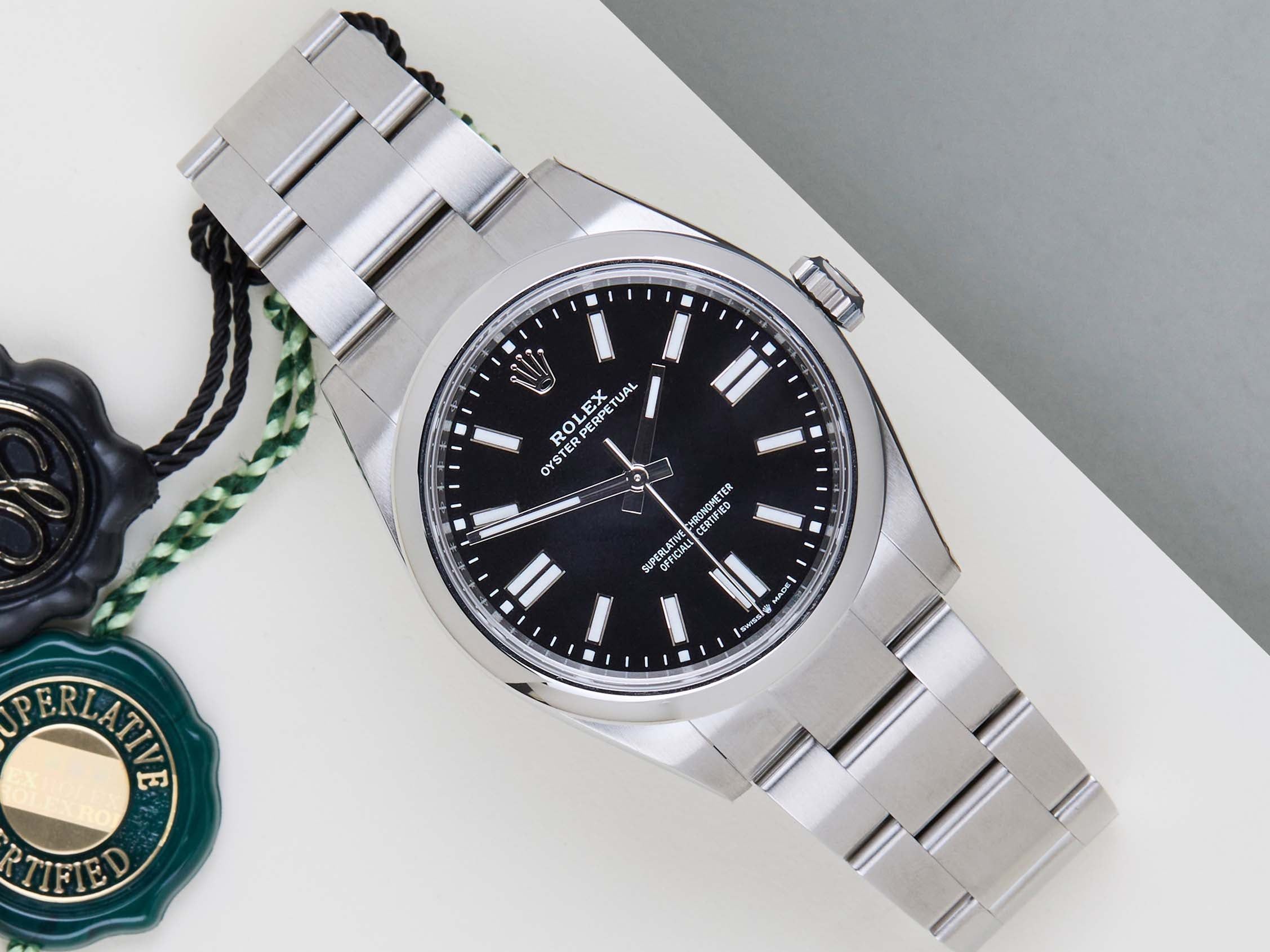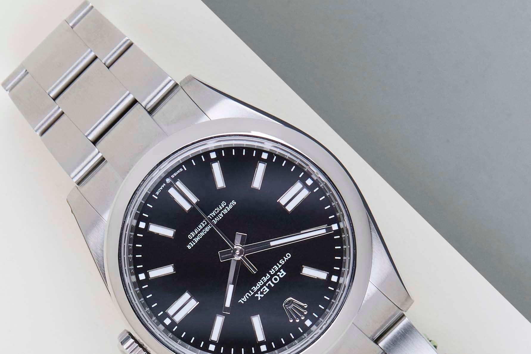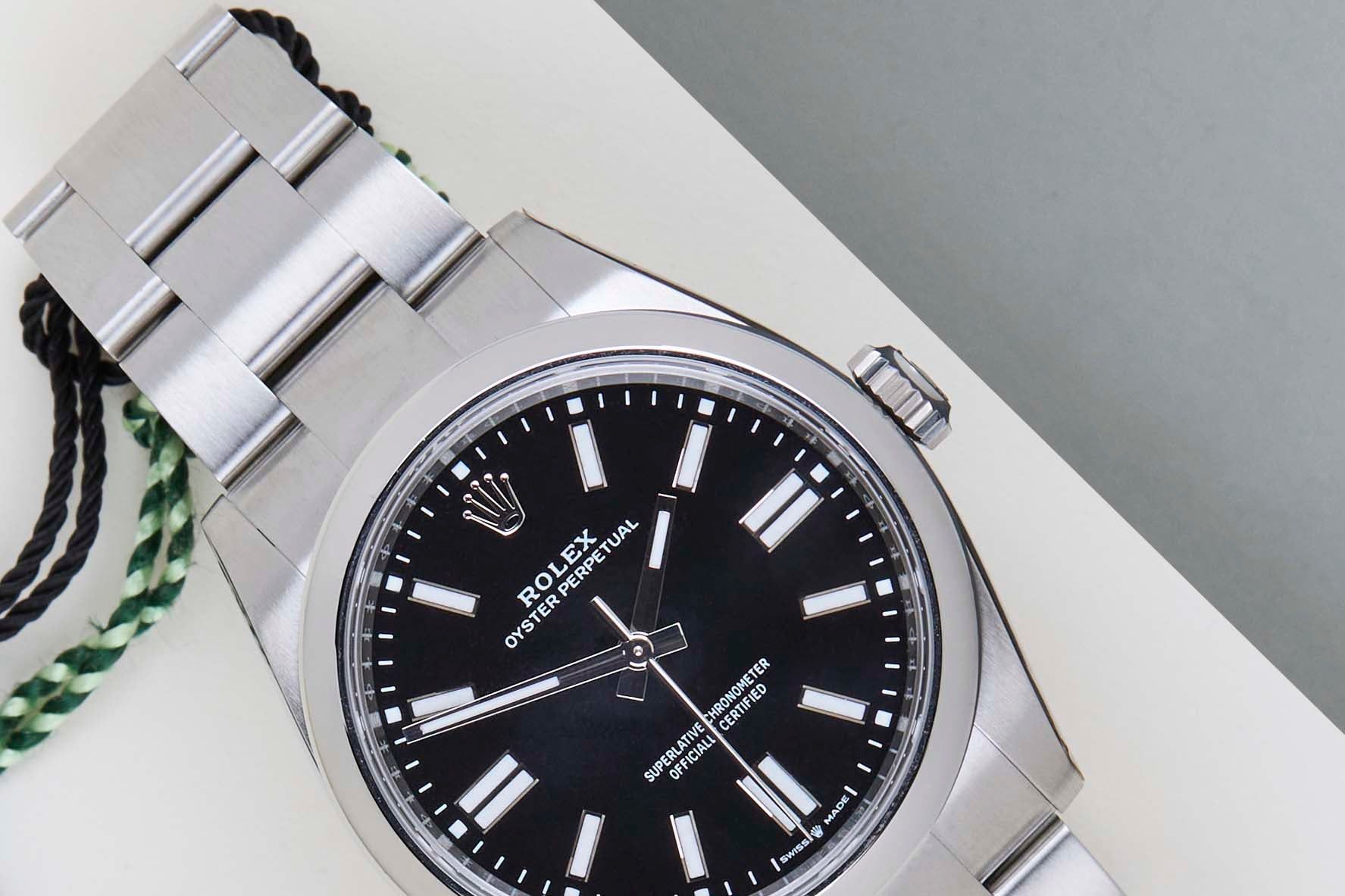 New & Unworn | Full Set | Partly Stickered | International Rolex Warranty Until December 2030The Rolex Oyster Perpetual was first introduced by Rolex in the 1930s. It is characterized by its water-resistant Oyster case and self-winding Perpetual movement. The Rolex Oyster Perpetual is a simple yet elegant timepiece that is suitable for both casual and formal wear.This Rolex Oyster Perpetual 'Black Dial' was sold for the first time in December 2025.The watch is fully made out of stainless steel. Rolex uses 904L in its steel watches, which is an extremely resistant and highly polishable superalloy.The Rolex reference 124300 and 134300 differ mainly in movement and case design, with the 134300 featuring the newer 3230 movement and a subtly updated case shape, and a bigger crown.This Rolex Oyster Perpetual 41 is in New & Unworn condition and comes with the original Rolex Warranty Card and box. Furthermore, the watch still has Worldwide Rolex Warranty until December 2030.