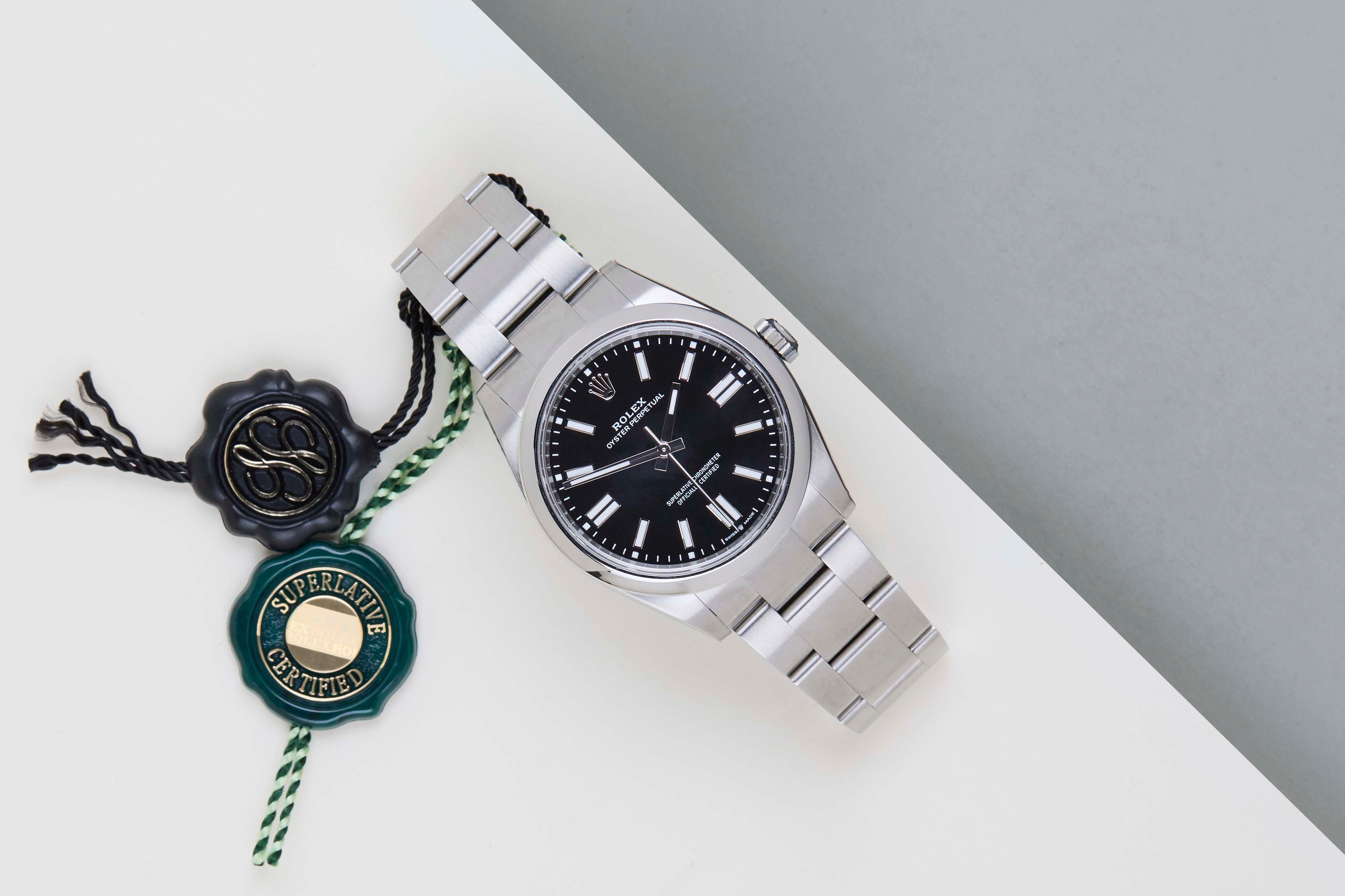 Deze Rolex Oyster Perpetual 'Zwarte Wijzerplaat' werd voor het eerst verkocht in december 2025.