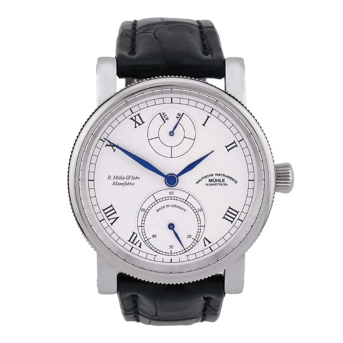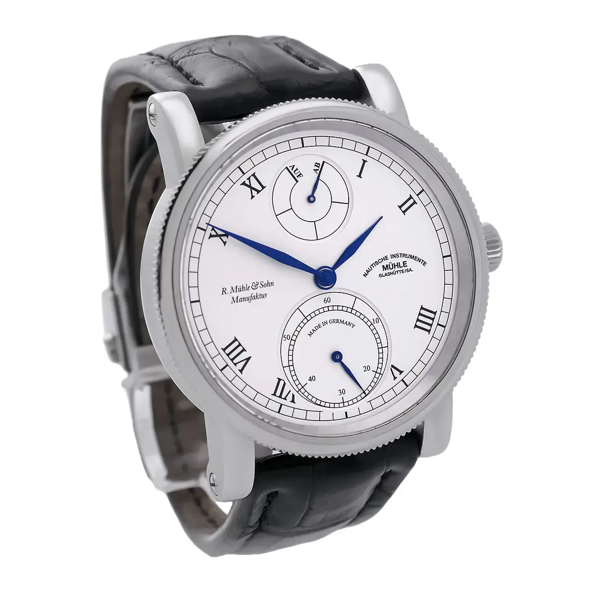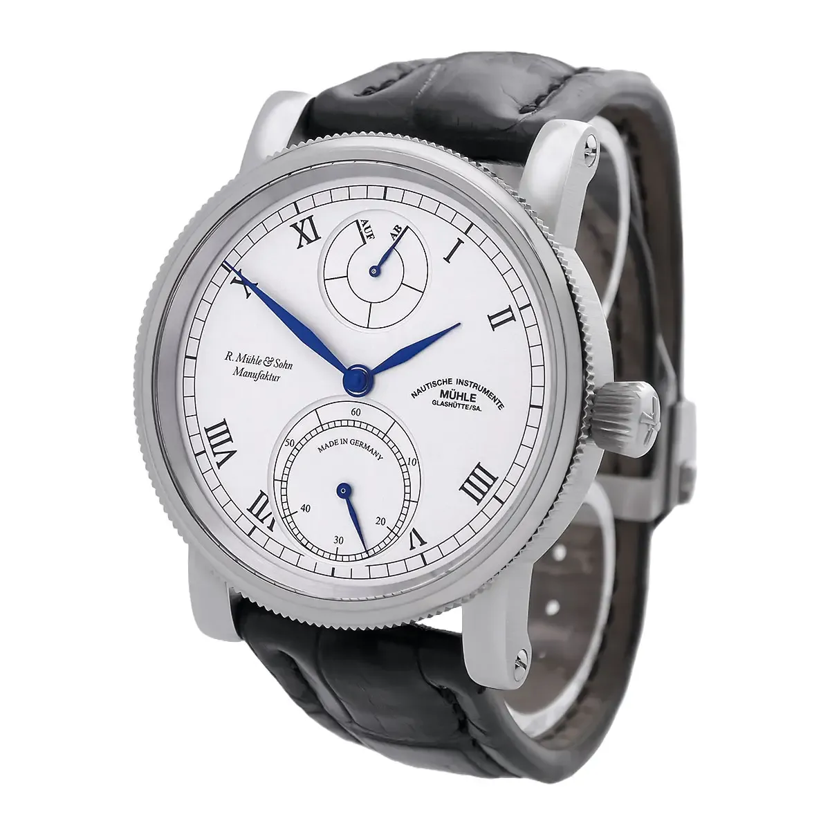 Mühle Glashütte | Robert Mühle Auf/Ab Edelstahl Weißes Zifferblatt | Ref. M1-11-15-100-LB - Full Set - Limitiert