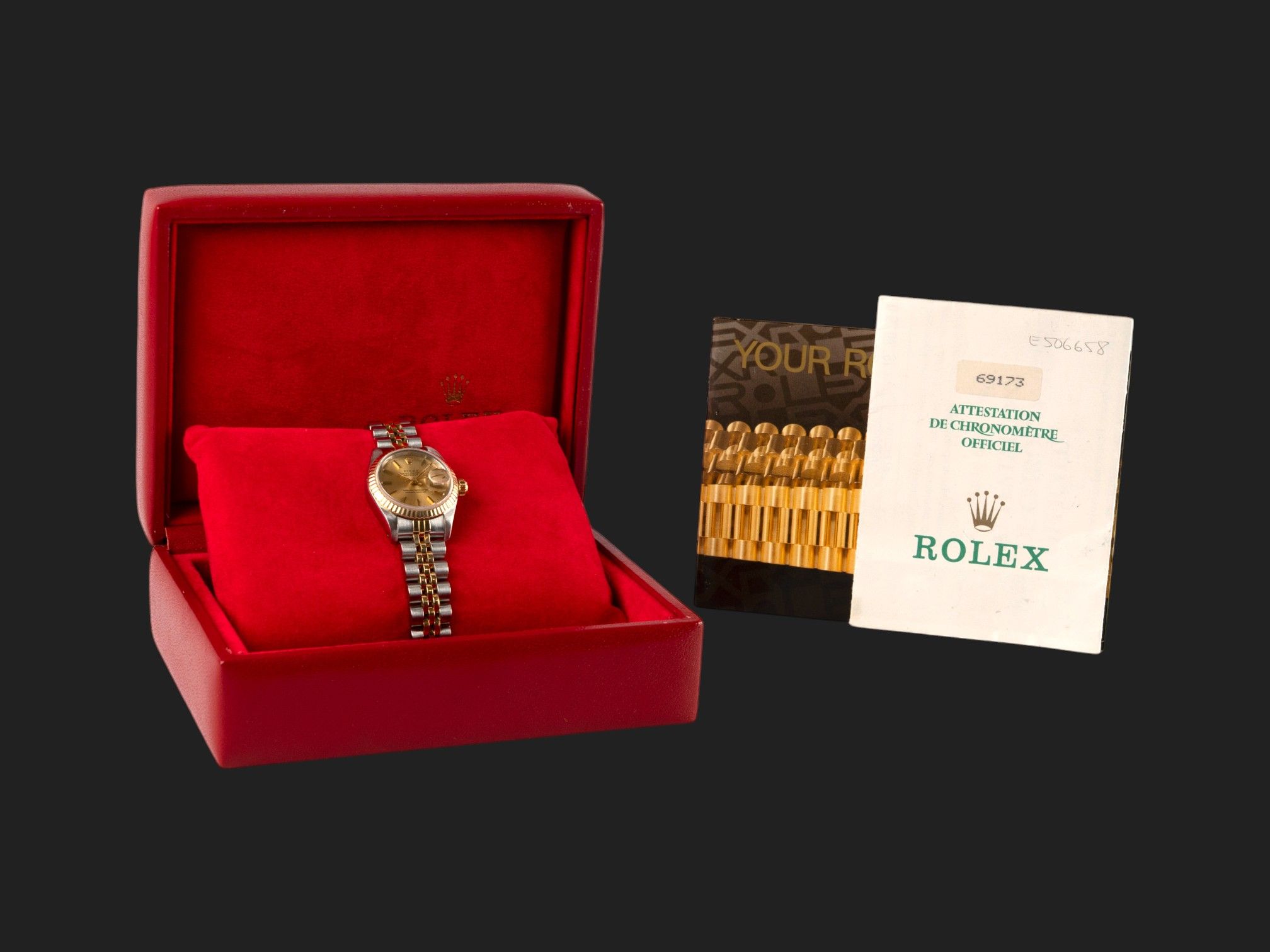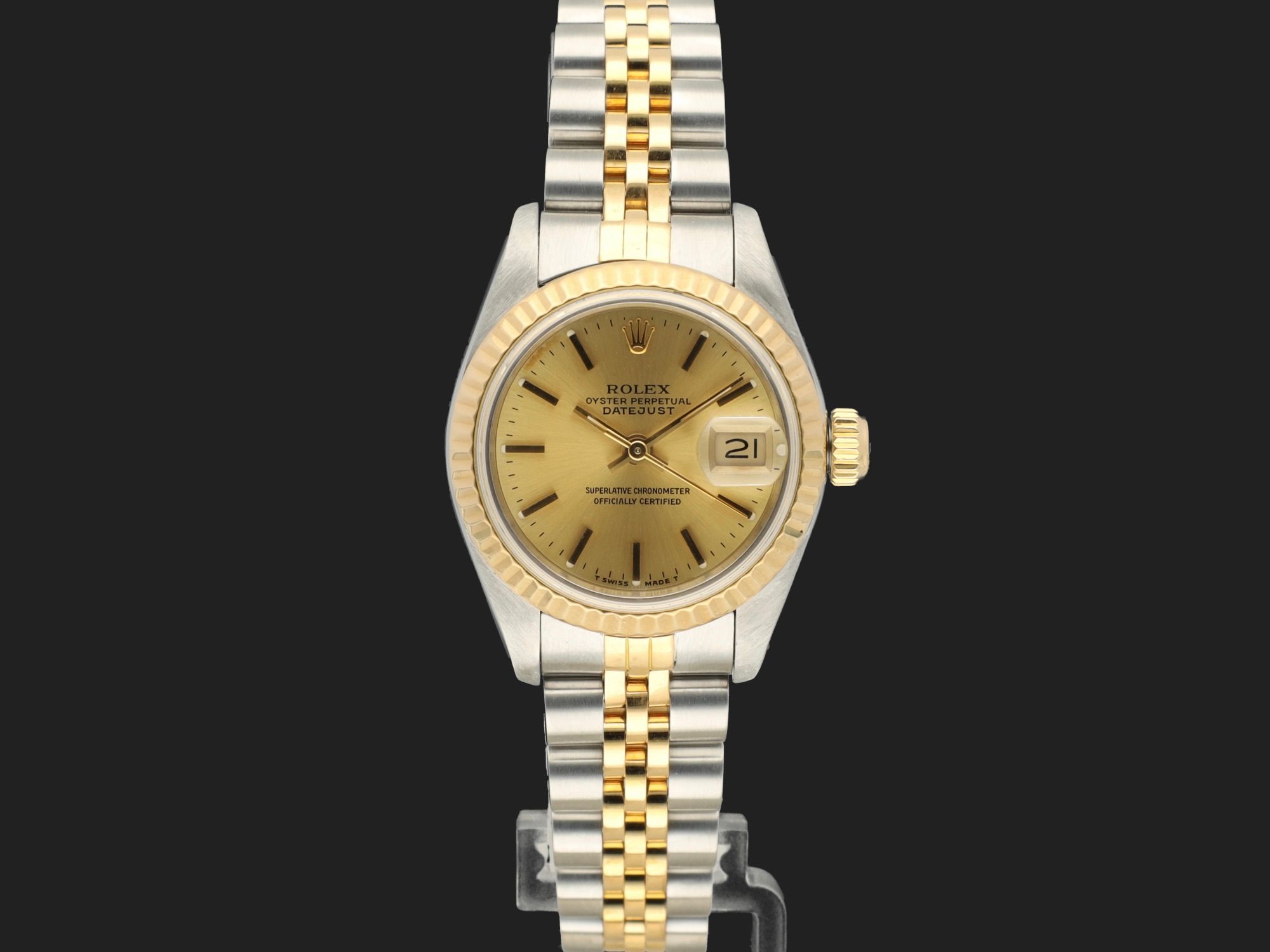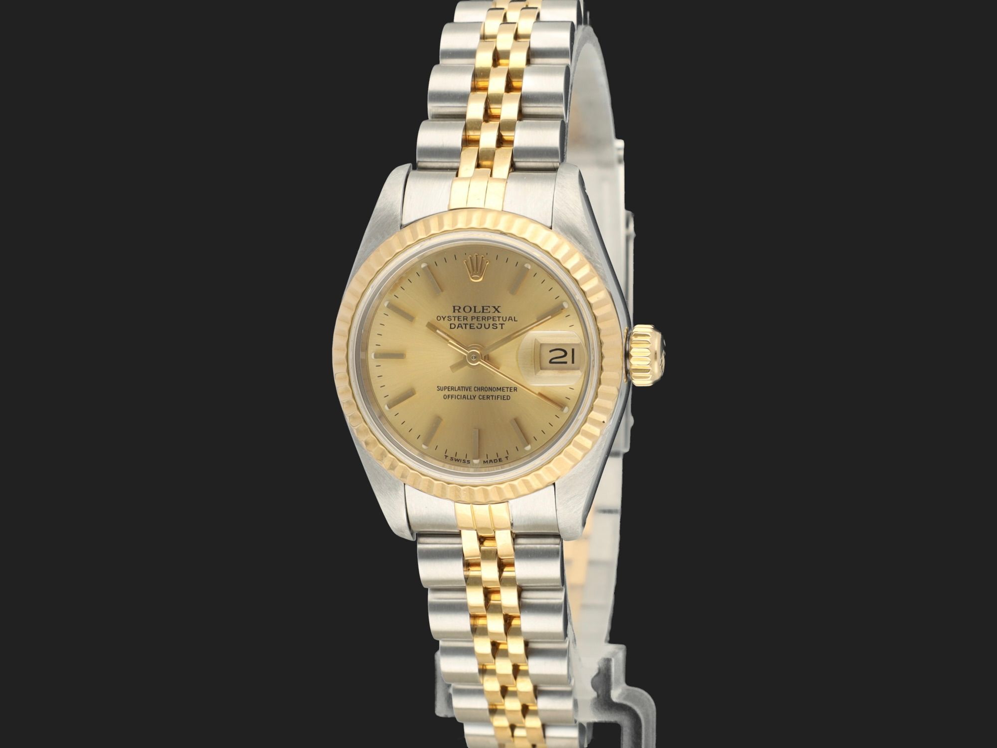 Dial colour is champagne.Originally sold by Rolex 06/1991, LC100 (Germany).