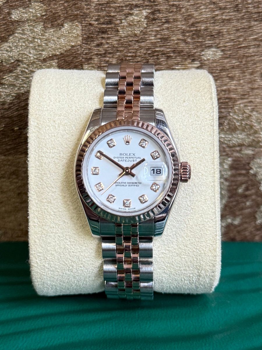Rolex Datejust 26mm White Diamond Dial Steel/Rose Super Jubilee. Rolex Datejust 26mm White Diamond Dial Steel/Rose Super Jubilee Ref. 179171 Year: 2006 📦 & 📝 + Service Papers 1 year warranty Very good condition