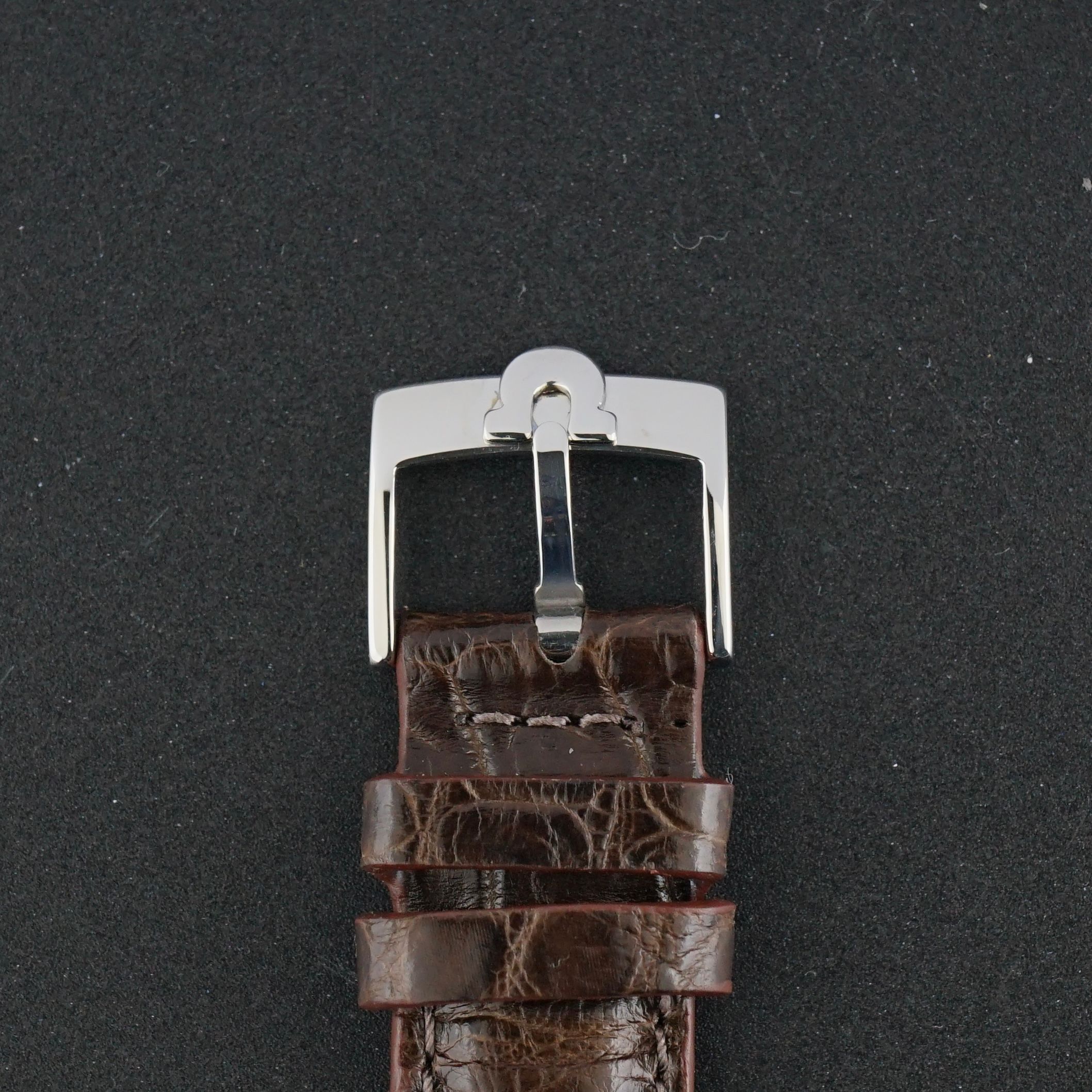 Band: Een bruine top-grain leren band met een krokodillenmotief. (Geschikt voor een pols van 12 tot 20cm)