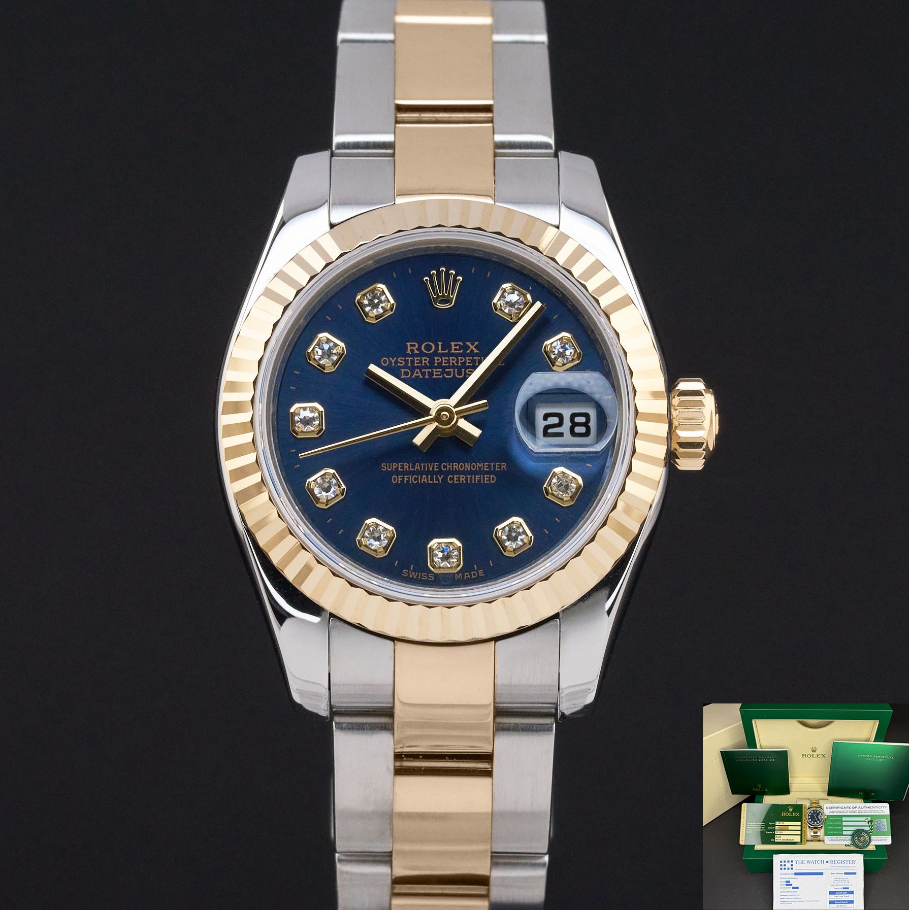 Rolex Lady Datejust, 179173, 26mm, 2013, Two-Tone, Blue Diamond dial, Fullset, 1y warranty