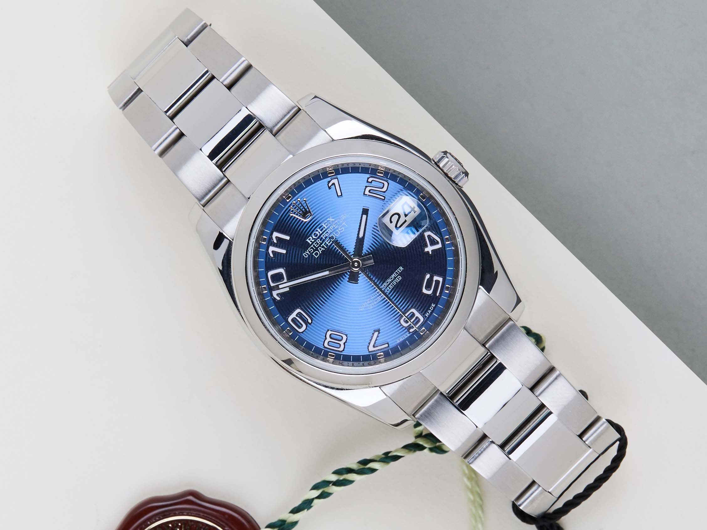 Deze Rolex Datejust 'Blauwe Concentrique Wijzerplaat - Oyster' werd voor het eerst verkocht in februari 2009. Deze Datejust is gemaakt van Rolex' 904L roestvrij staal en is voorzien van een Oyster-armband.