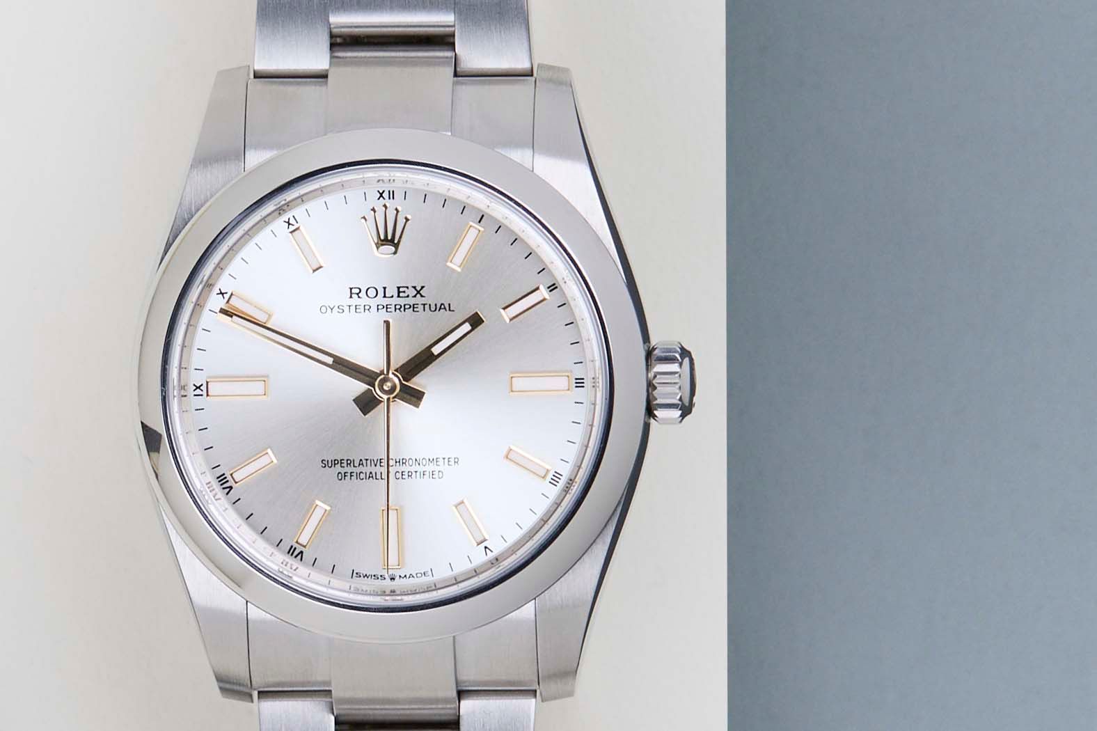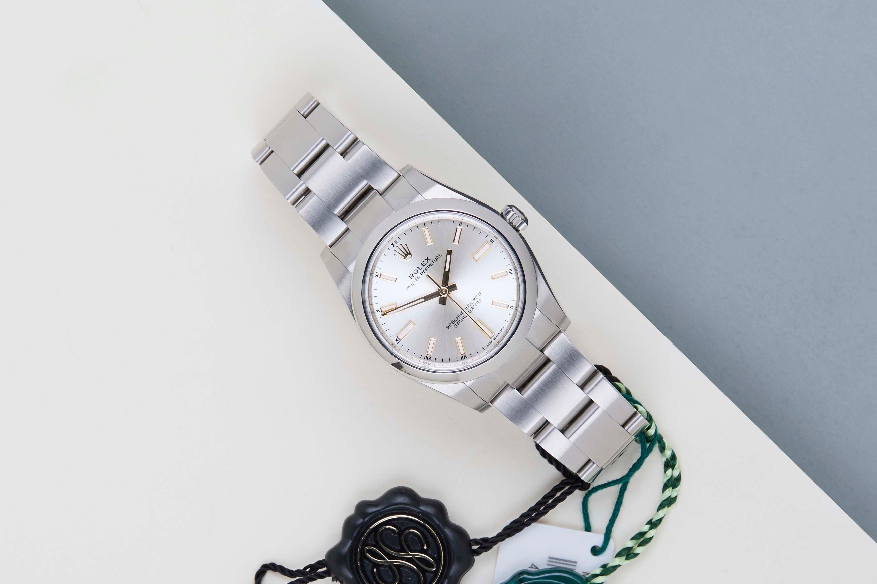 Deze Rolex Oyster Perpetual 34 'Zilveren Wijzerplaat' werd voor het eerst verkocht in oktober 2026.