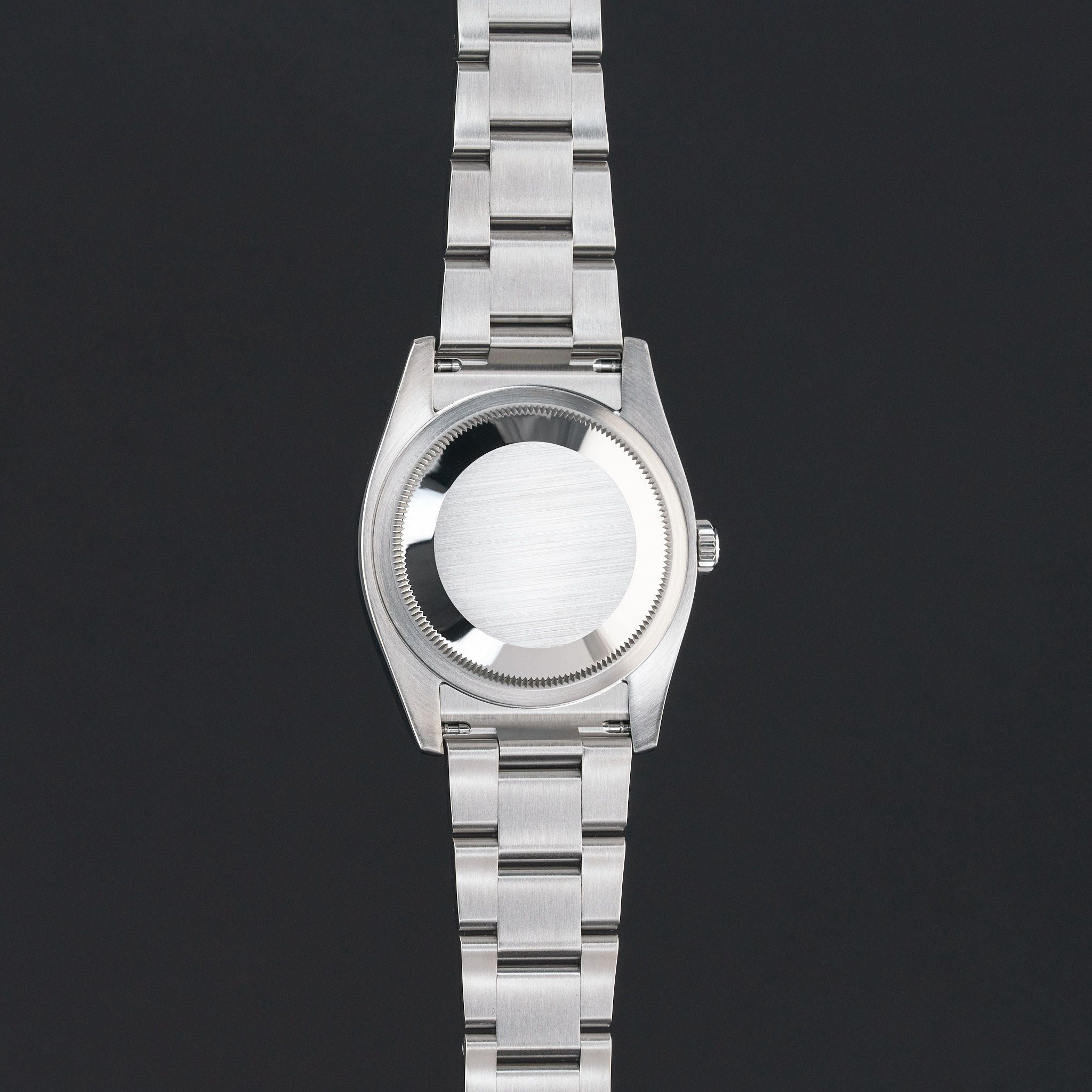 This Rolex Oyster Perpetual 116034 features a White Roman diamond dial and is crafted from stainless steel, with a production year of 2017.Case No: W476XXXX