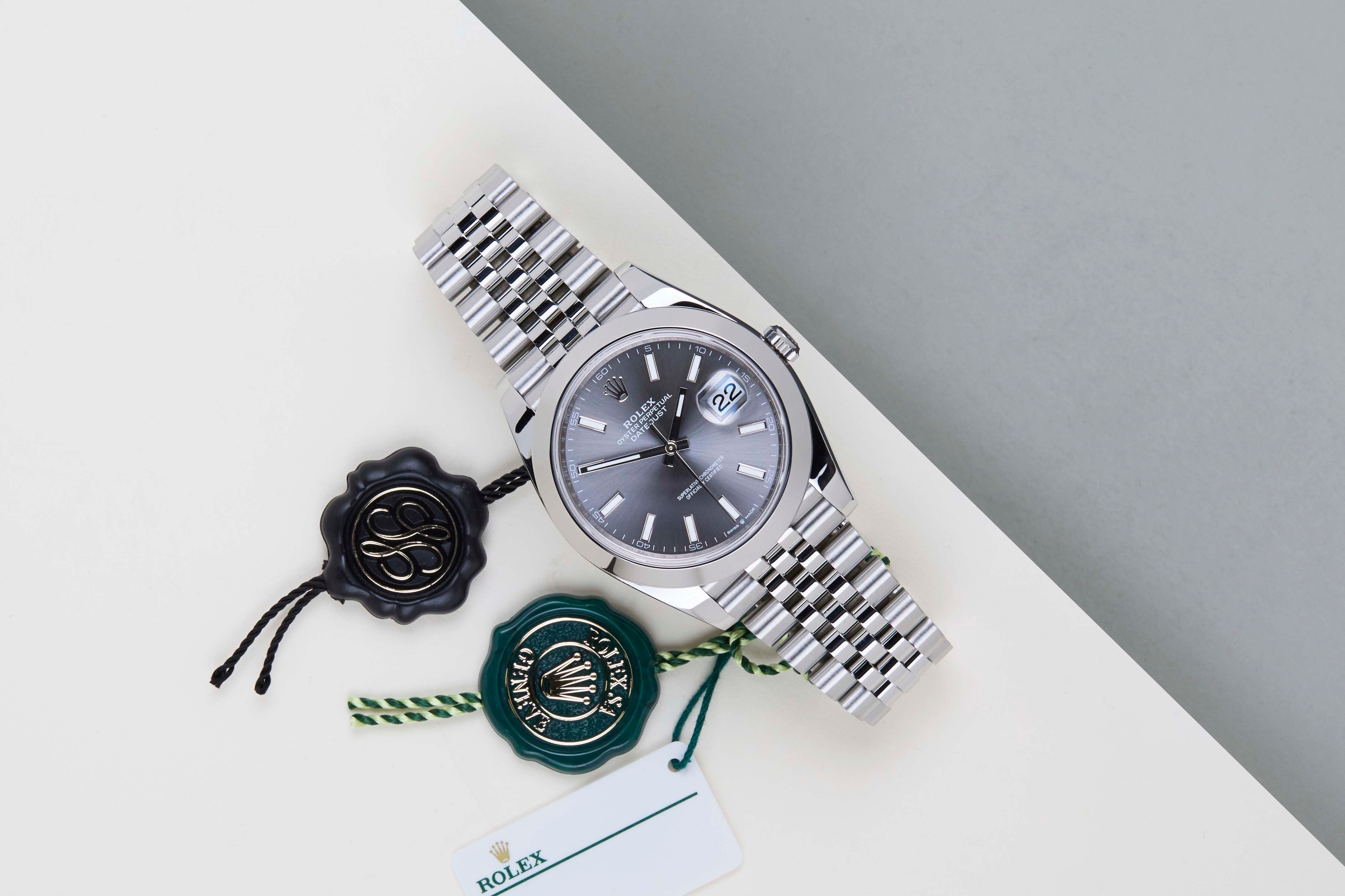 Full Set | International Rolex Warranty until June 2028 | Including Rolex White TagRolex introduced the original Datejust in 1945 to celebrate the company's 40th anniversary. Due to the various case sizes and materials, the Datejust has been ingrained in Rolex's history and remains incredibly popular for 75 years.This Rolex Datejust 41 'Slate Dial - Jubilee' was sold for the first time in June 2023.This Datejust is made of stainless steel and is fitted with a Jubilee bracelet, which is equipped with the Easylink. This extension, allows the wearer to either extend or shorten the bracelet by 5 millimeters, improving the wearability and usability of the watch.This Rolex Datejust 41 is Mint condition and comes with the original Rolex Warranty Card and box. Furthermore, the watch still has International Rolex Warranty until June 2028.