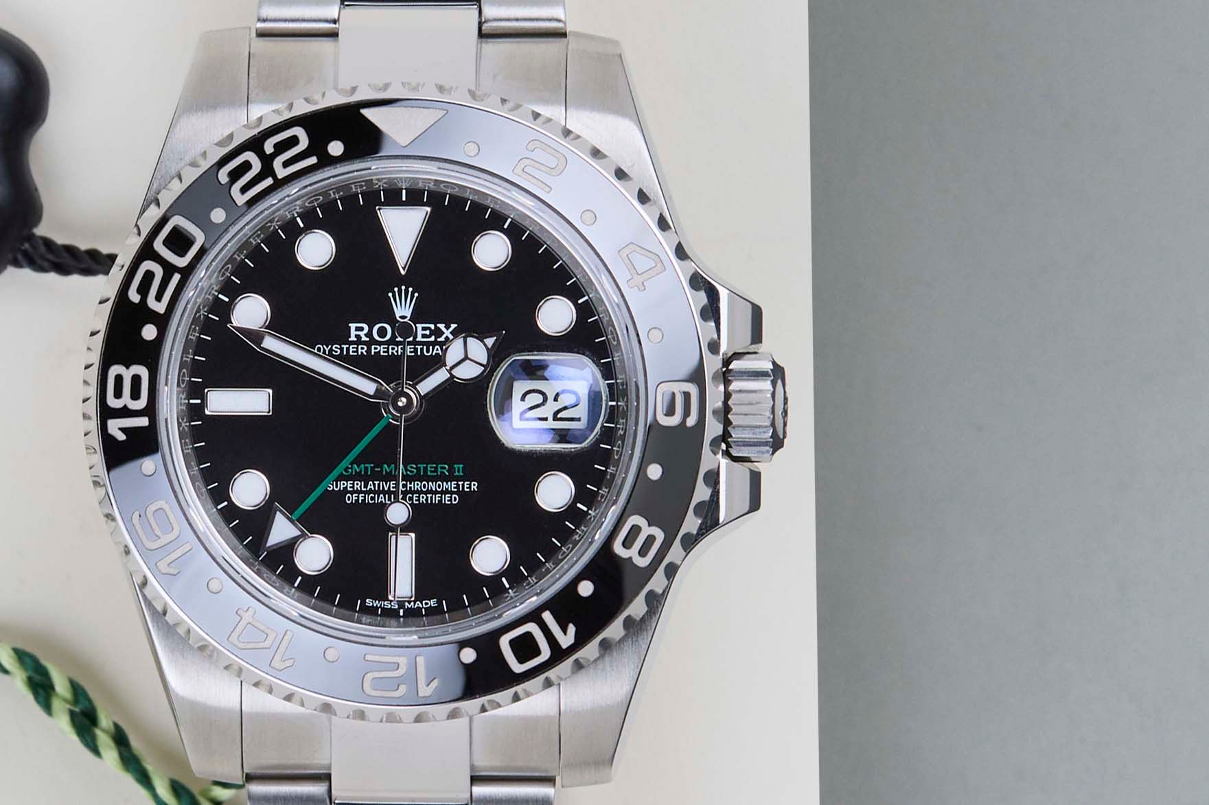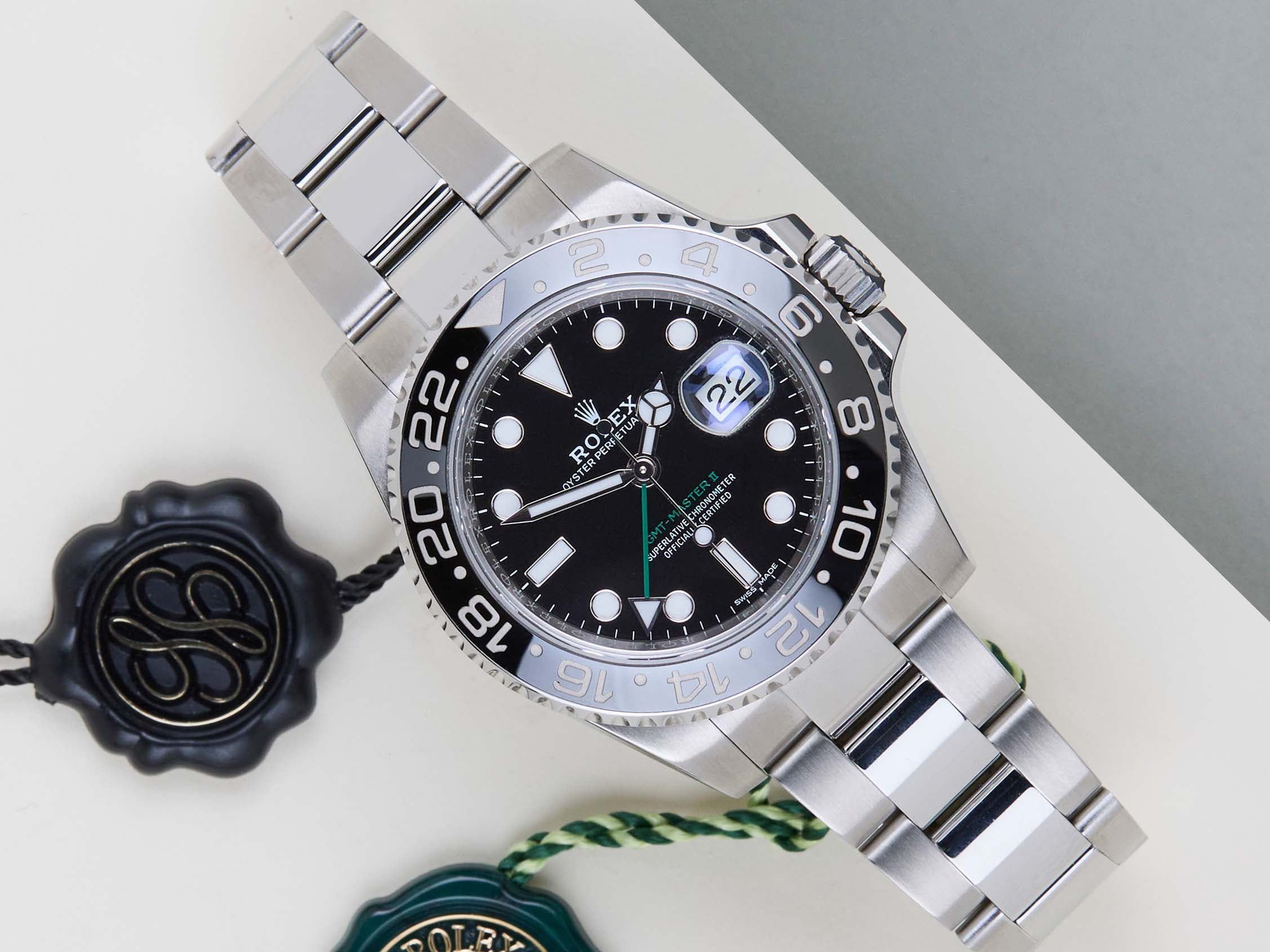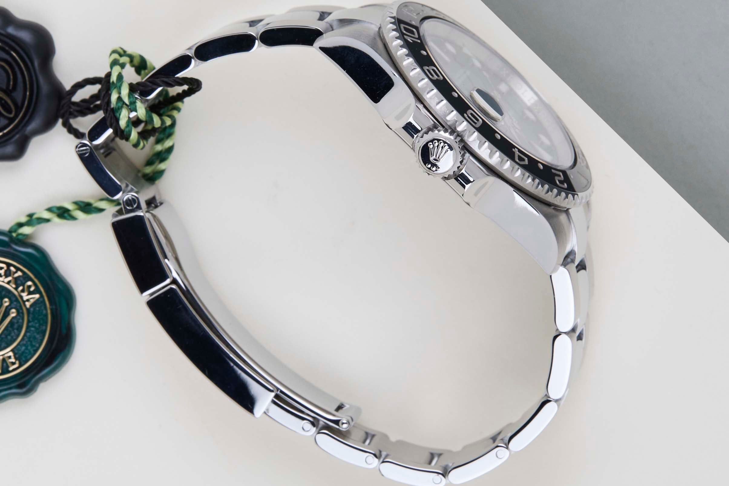Full Set | European Rolex Warranty Card (LC010 - Switzerland)The Rolex GMT was originally designed in collaboration with Pan American Airways and issued to their crews on long-haul flights. The dual time zone can track local and home time, which is a useful tool for pilots and those who are traveling a lot across different time zones.The reference 116710 is the first generation of the GMT-Master II with a Ceramic Bezel. The material to make this bezel is called 'Cerachrom', which was developed completely in-house by Rolex to be highly scratch-resistant.This Rolex GMT-Master II was sold for the first time in November 2018.This GMT-Master is made of stainless steel and is fitted with an Oyster Bracelet, which is equipped with the Easylink. This extension, allows the wearer to either extend or shorten the bracelet by 5 millimetres, improving the wearability and usability of the watch. This GMT is equipped with Black Bezel, which can be derived from the reference 116710LN, Lunette Noir.This Rolex GMT-Master II is in a Mint condition and comes with the original Rolex Warranty Card and Box. Furthermore, the watch has been serviced by our watchmaker, and therefore it comes with One Year of Steiner warranty.