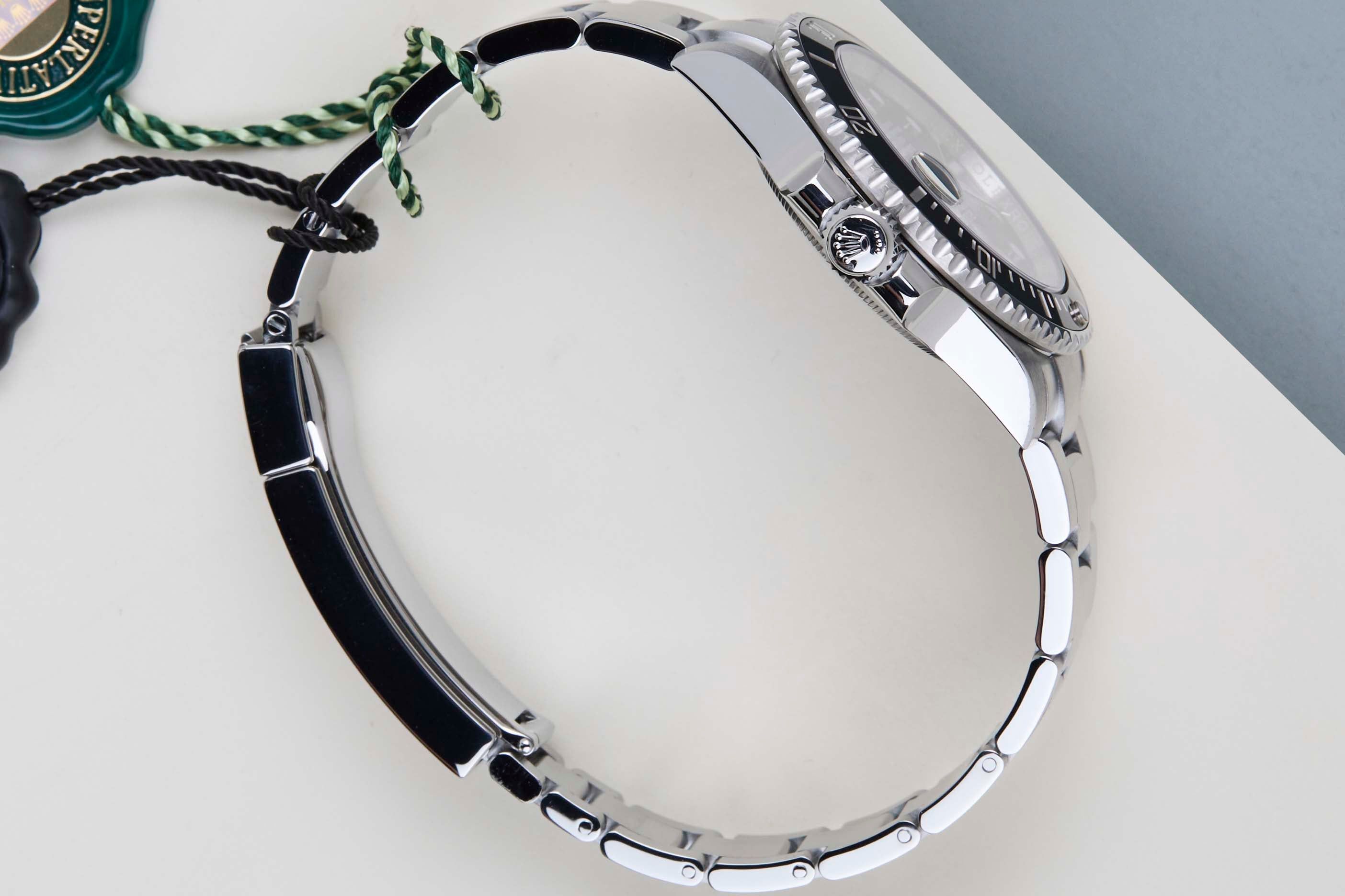 Full Set | European Rolex Warranty Card (LC010 - Switzerland)This model of Rolex Submariner was first introduced in 2010, being the first serie to be fitted with a ceramic bezel in comparison to the classic, stainless steel version on prevision Submariners.In addition, these Submariners are fitted with the Maxi Case. Although it maintained the same-time honored 40mm case as its predecessor, the overall profile was noticeably chunkier thanks to thicker lugs and crown guards being nearly twice the width of the previous model. This Submariner Date comes with a black dial and bezel, with can be derived from the reference 116610LN, Lunette Noir. The watch is fully made out of stainless steel. Rolex uses 904L in its steel watches, which is an extremely resistant and highly polishable superalloy. This Submariner Date is powered by an entirely in-house movement by Rolex, Caliber 3135. This Rolex Submariner Date has been sold for the first time in June 2018 in Switzerland. The watch is in Mint condition and comes with the original Rolex Warranty Card and original box. Furthermore, the watch comes with one Year of Steiner Warranty.