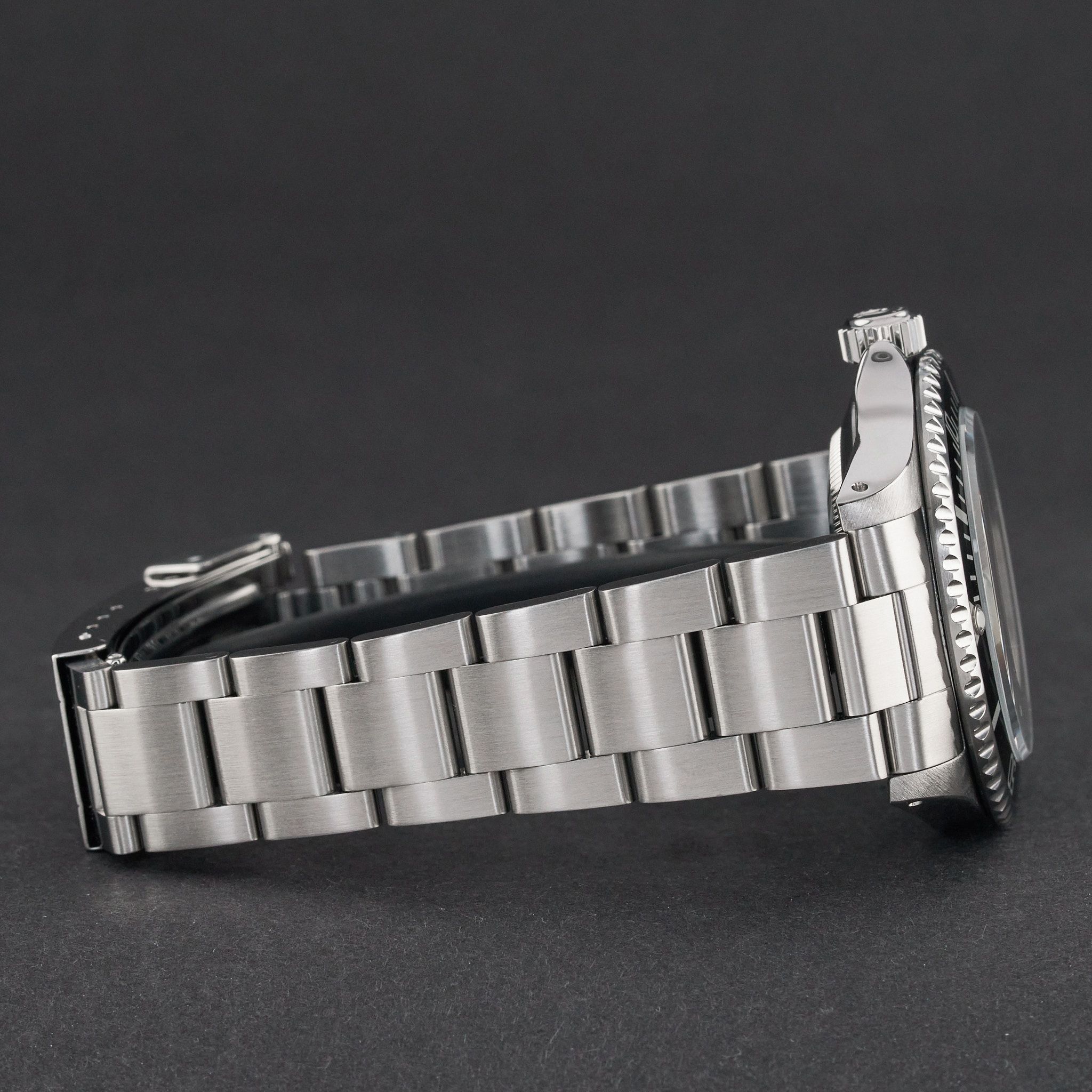 Deze Rolex Submariner (No Date) 14060 heeft een zwarte wijzerplaat en is gemaakt van roestvrij staal, met een productiejaar van 1999.