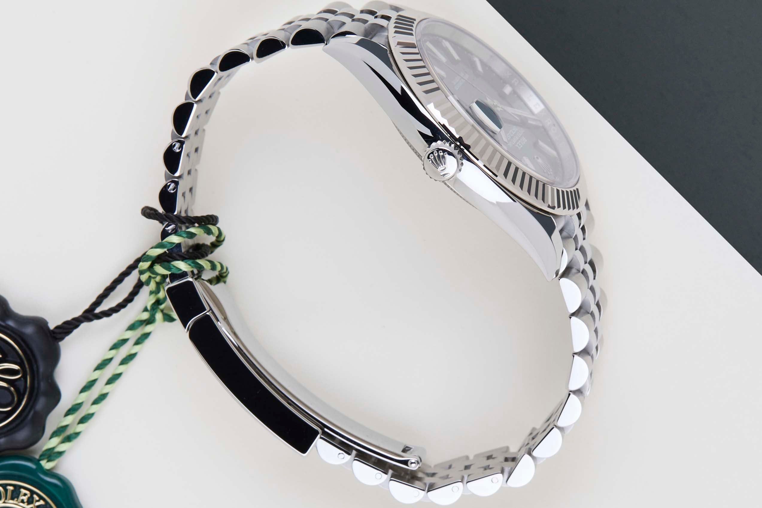 Deze Rolex Datejust 41 is in Nieuw & Ongebruikt staat en wordt geleverd met de originele Rolex Garantiekaart en doos. Bovendien heeft het horloge nog steeds een Internationale Rolex Garantie tot februari 2028.