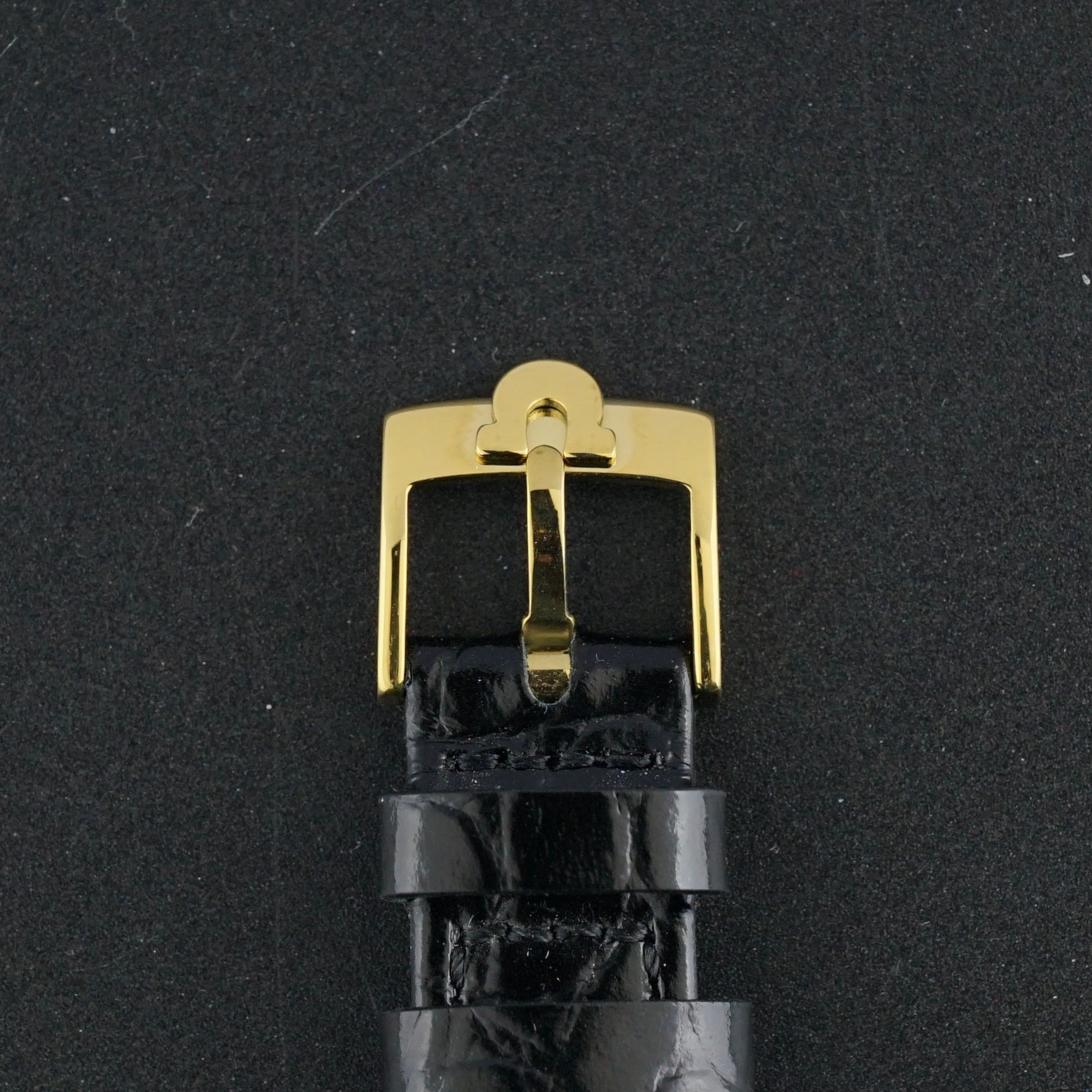 Strap: A black leather strap with a crocodile motif. (Fits a 12 to 19,5cm wrist)