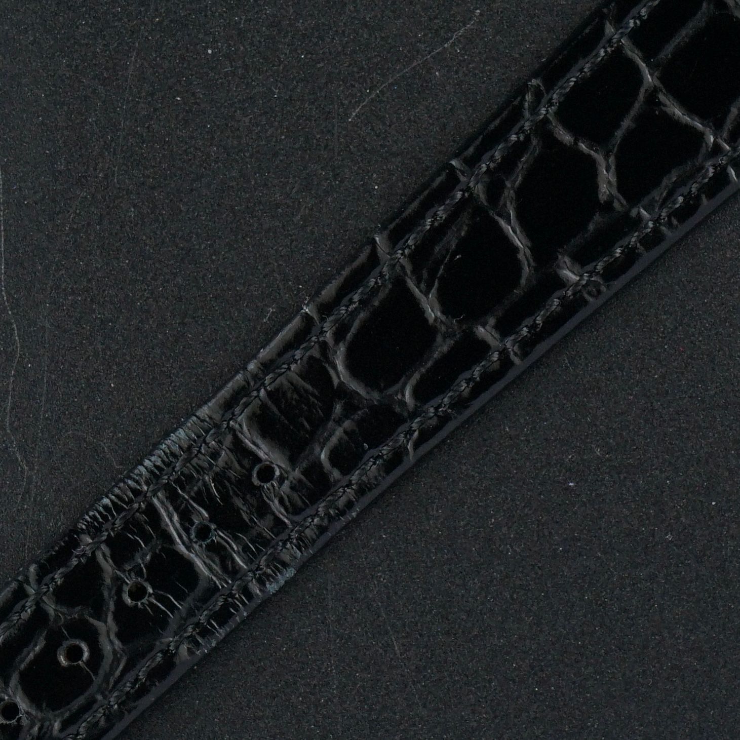 Band: Een zwarte leren band met een krokodillenmotief. (Geschikt voor een polsomtrek van 12 tot 19,5cm)