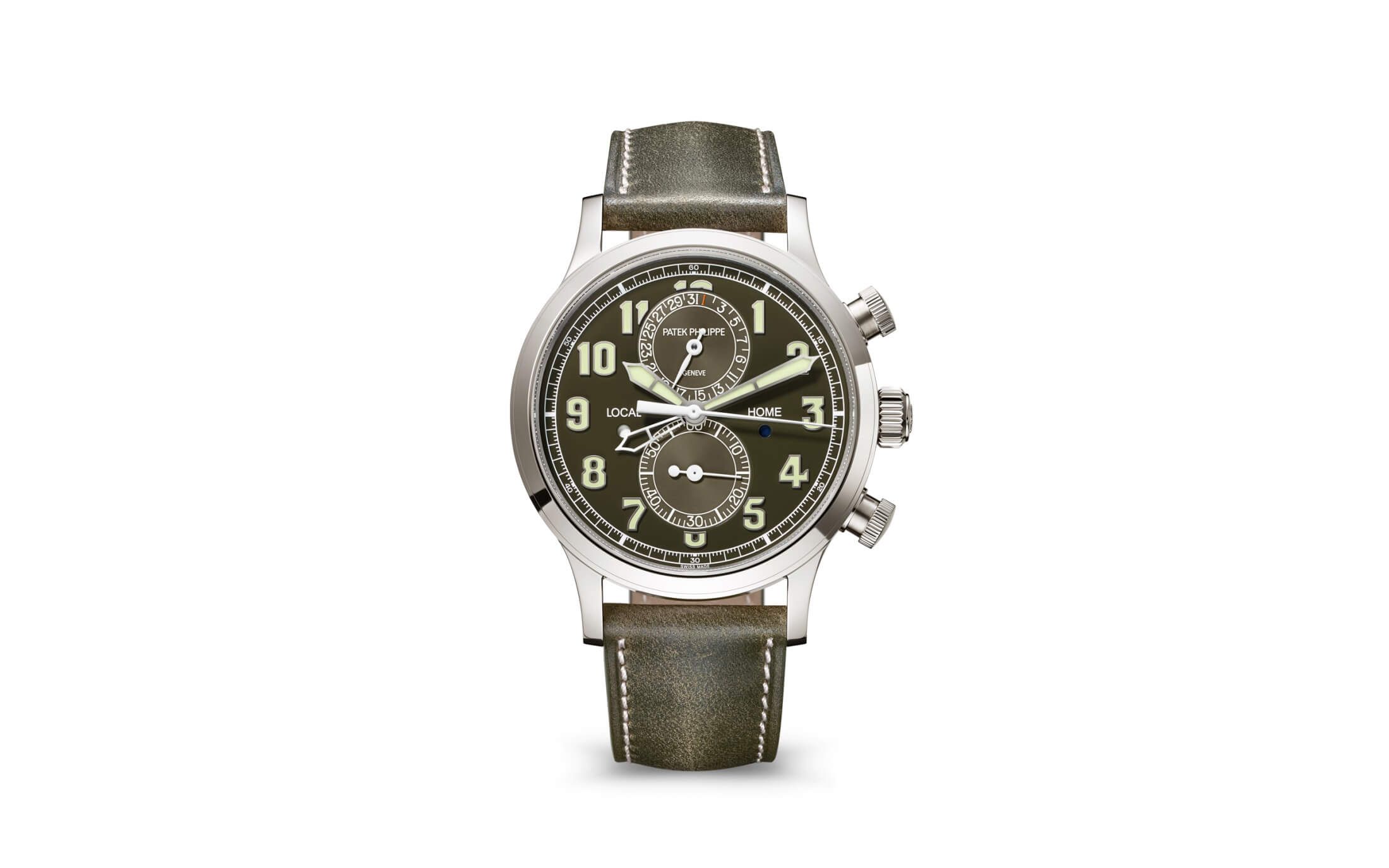 Patek Philippe 5924G-010 Calatrava Pilot Travel Time Chronograph White Gold / Green