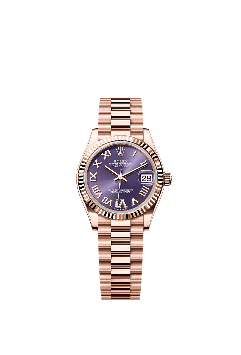 Rolex 278275-0029 Datejust 31 Rose Gold / Fluted / Aubergine - Roman / President