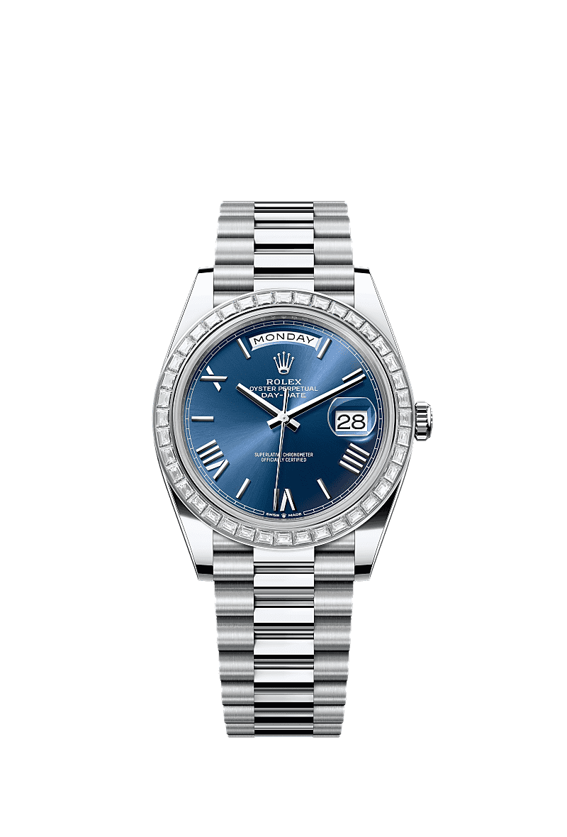 Rolex Day-Date 40 Rolex 228396TBR-0026 - Day-Date 40 Platinum Baguette / Blue Roman