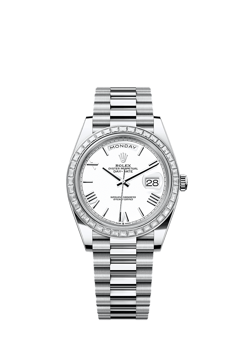 Rolex Day-Date 40 Rolex 228396TBR-0018 - Day-Date 40 Platinum Baguette / White Roman