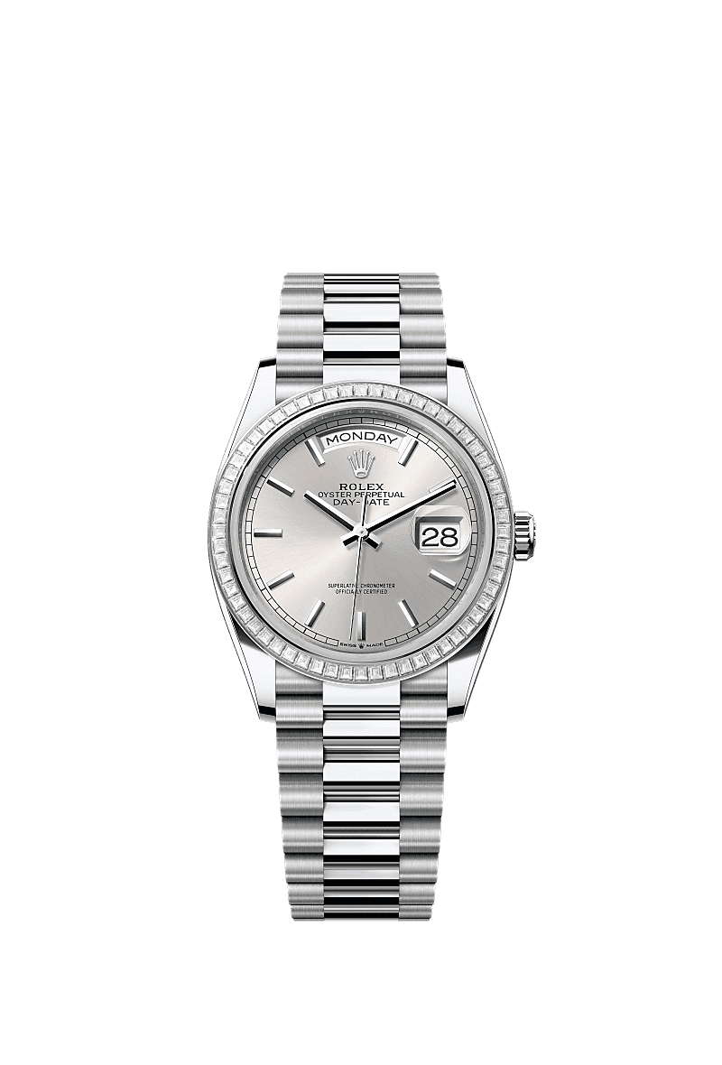 Rolex 128396TBR-0004 Day-Date 36 Platinum - Diamond / Silver / President