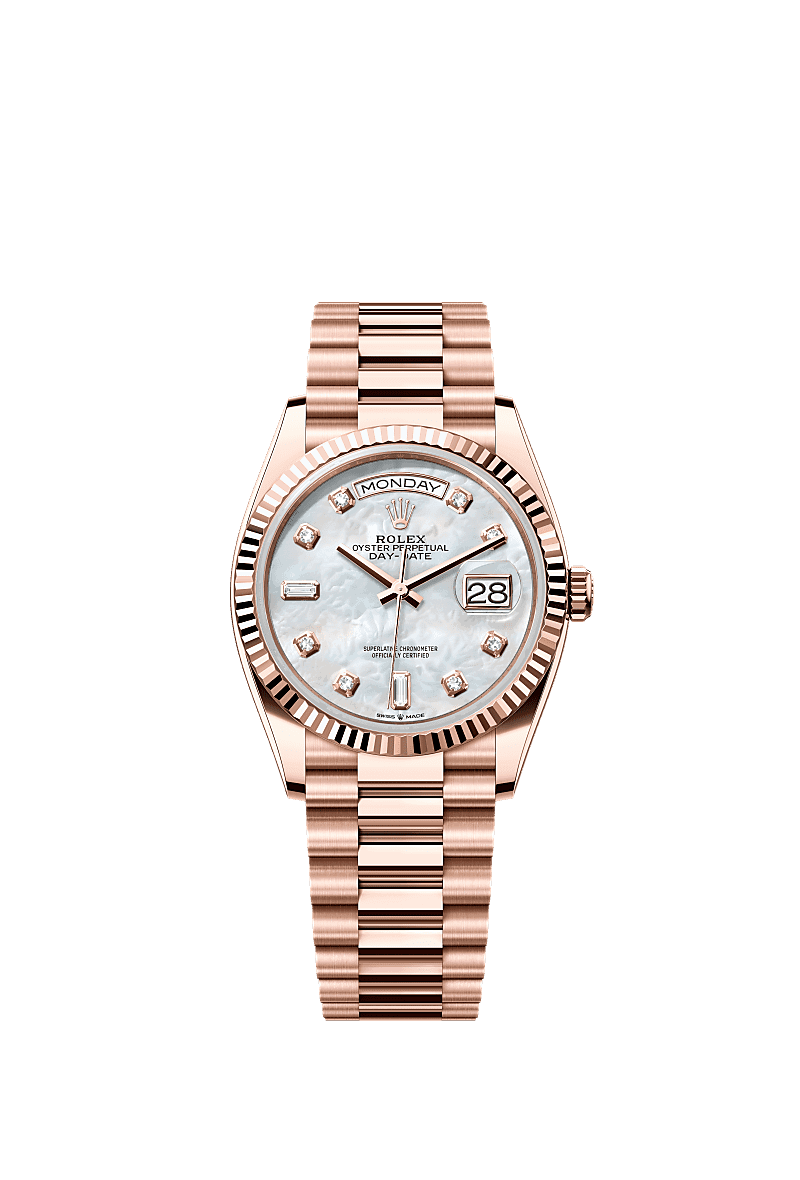 Rolex Day-Date 36 Rolex 128235-0029 Day-Date 36 Everose Gold / Fluted / MOP-Diamond / President