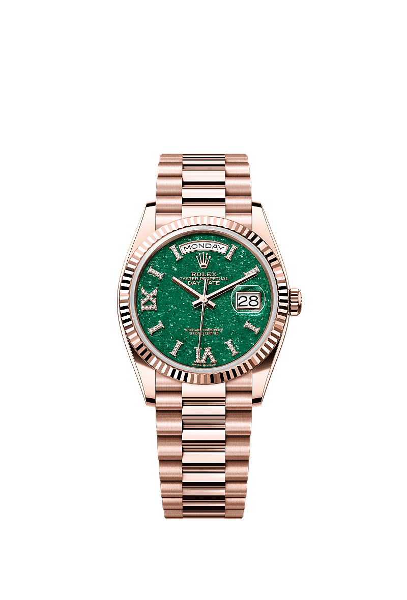 Rolex 128235-0068 Day-Date 36 Everose Gold - Fluted / Green Aventurine / President