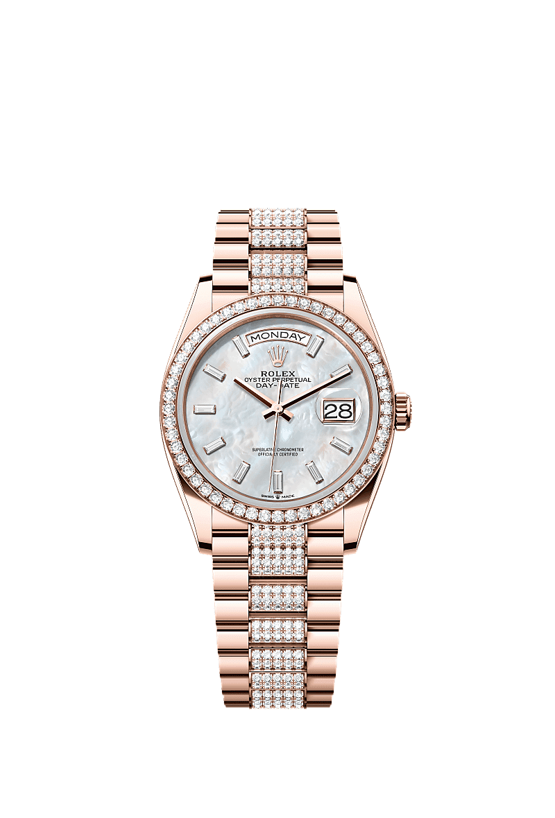 Rolex Day-Date 36 Rolex 128345RBR-0078 - Day-Date 36 Everose Gold / Diamond / MOP - Baguette / President - Diamond