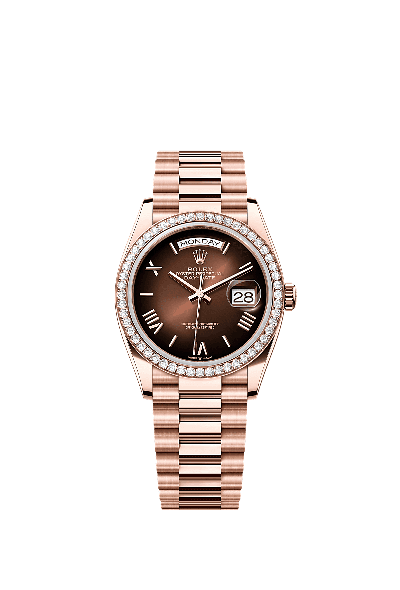 Rolex 128345RBR-0075 - Day-Date 36 Everose Gold - Fluted / Brown Ombré - Roman / President