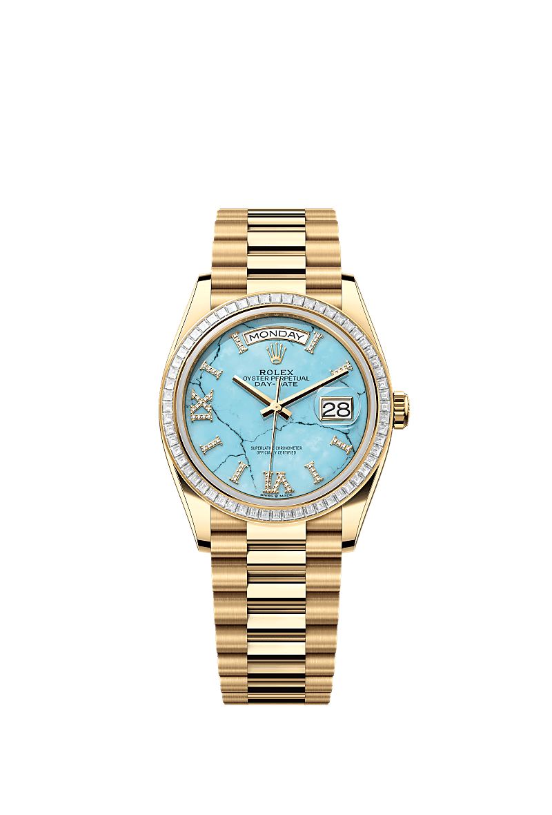 Rolex 128398TBR-0014 - Day-Date 36 Yellow Gold - Baguette / Turquoise / President