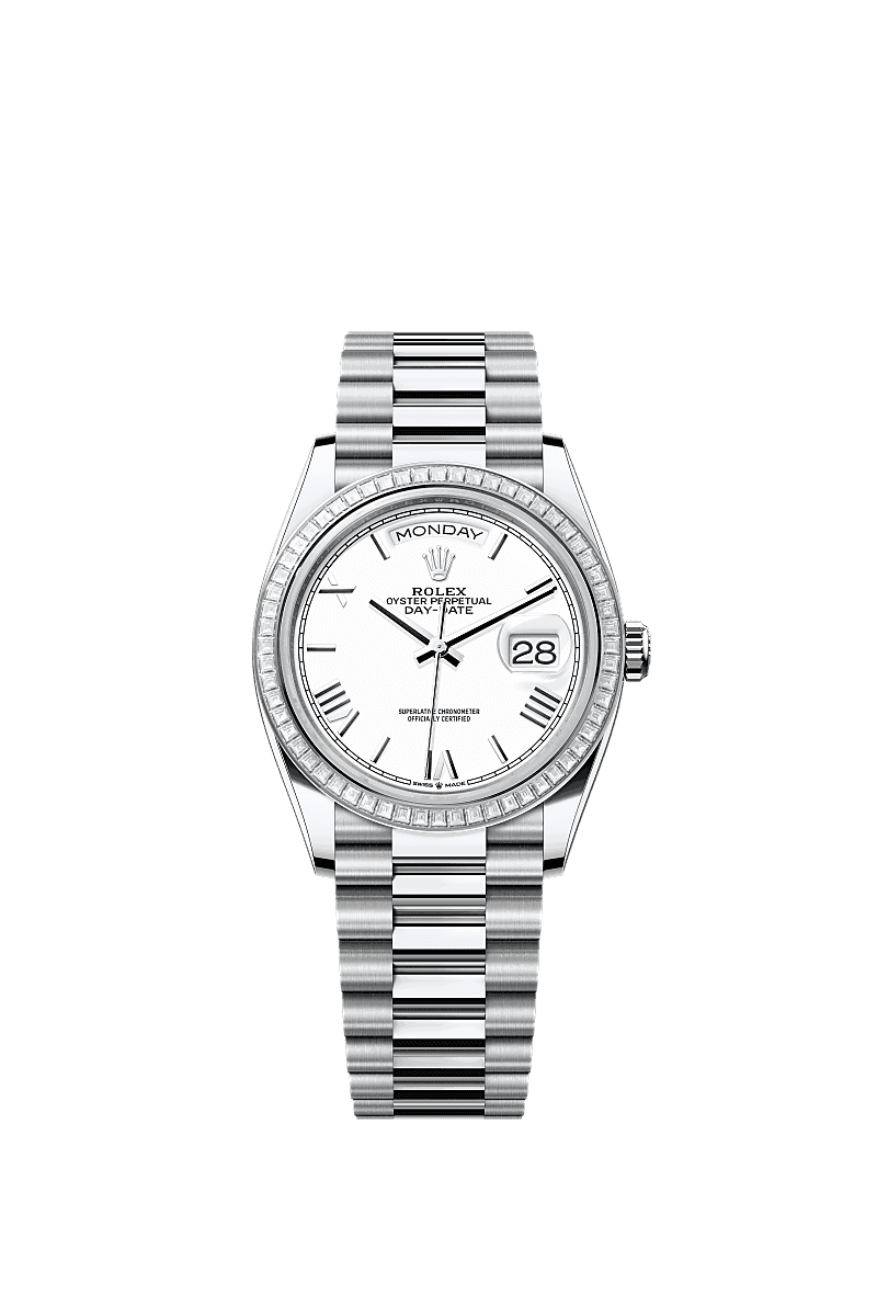 Rolex Day-Date 36 Rolex 128396TBR-0018 - Day-Date 36 Platinum - Baguette / White - Roman / President