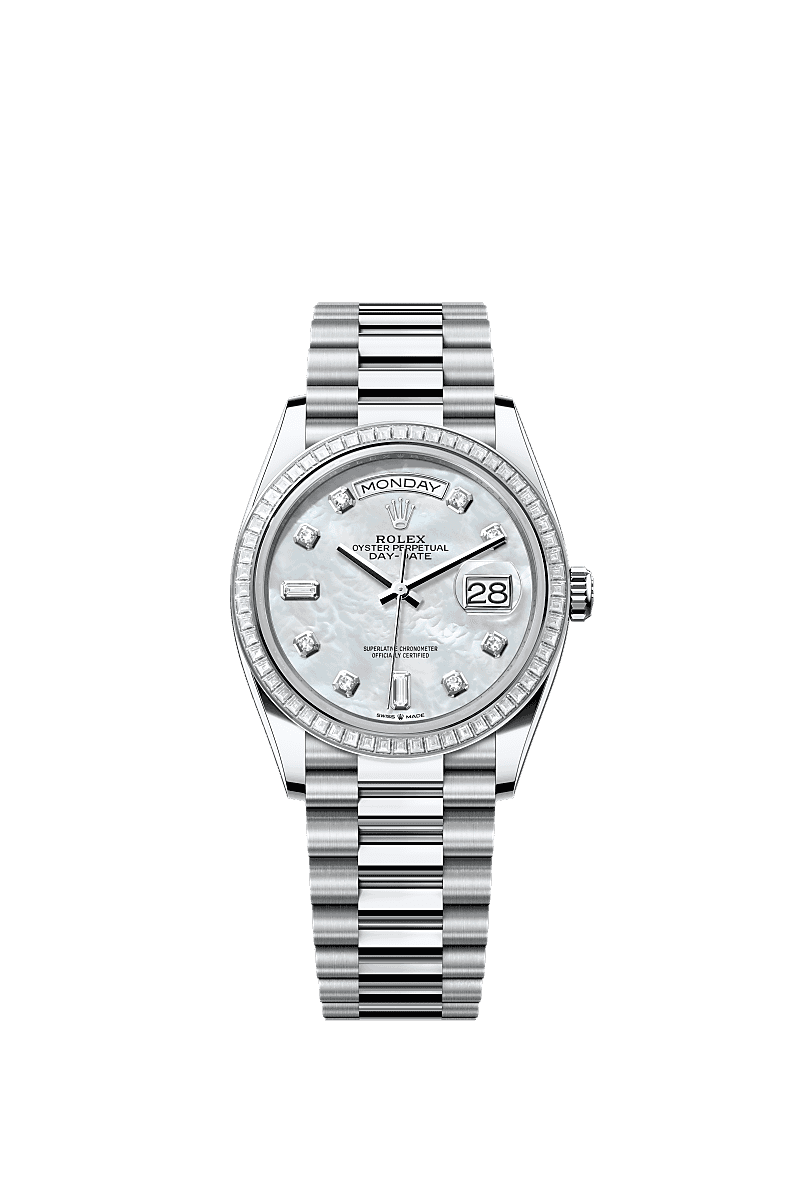 Rolex 128396TBR-0005 - Day-Date 36 Platinum - Baguette / MOP / President