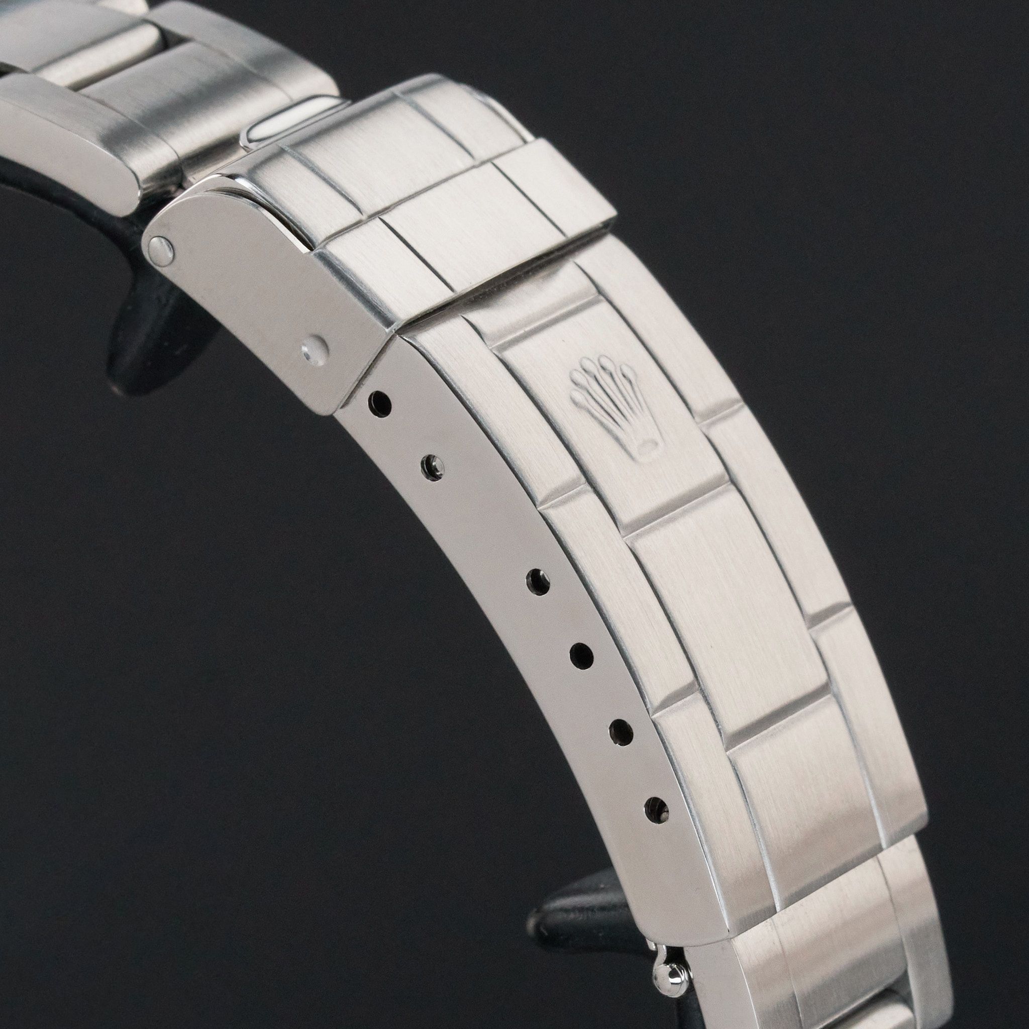 - Lichte gebruikssporen zoals haarlijntjes of kleine oppervlakkige krasjes. Kast, bezel en band behouden hun scherpe randen en oorspronkelijke vorm. Mogelijk professioneel gepolijst zonder de originele contouren aan te tasten. Mechanisch volledig functioneel.