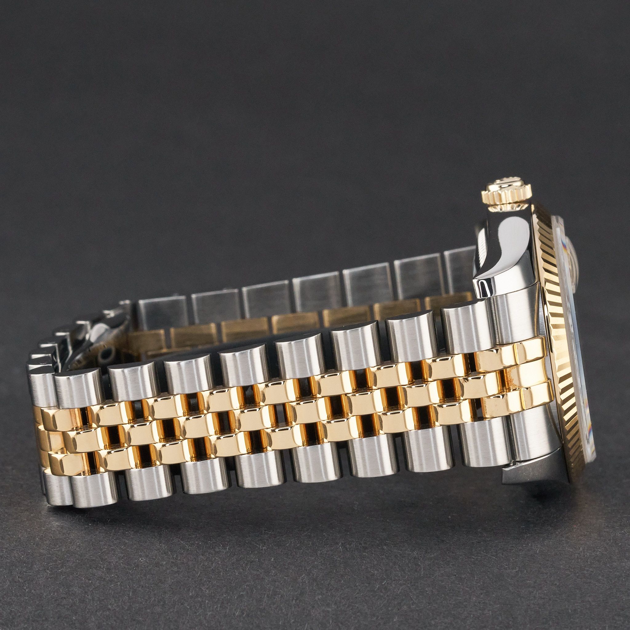 This Rolex Datejust 116233 features a Champagne diamond dial and is crafted from 18K yellow gold and stainless steel.Case No: 71SNXXXX