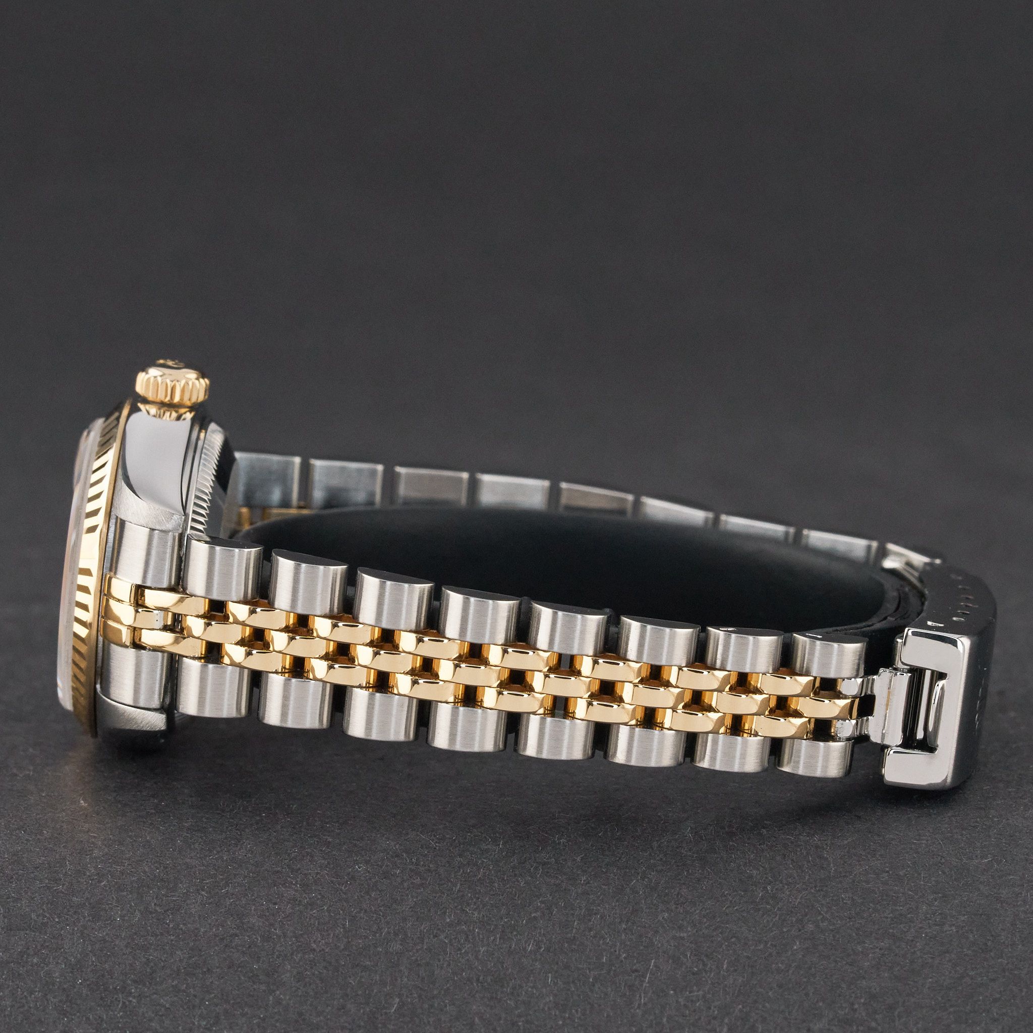 This Rolex Lady-Datejust 79173 features a Champagne jubilee diamond dial and is crafted from 18K yellow gold and stainless steel, with a production year of 1999.Case No: A85XXXX