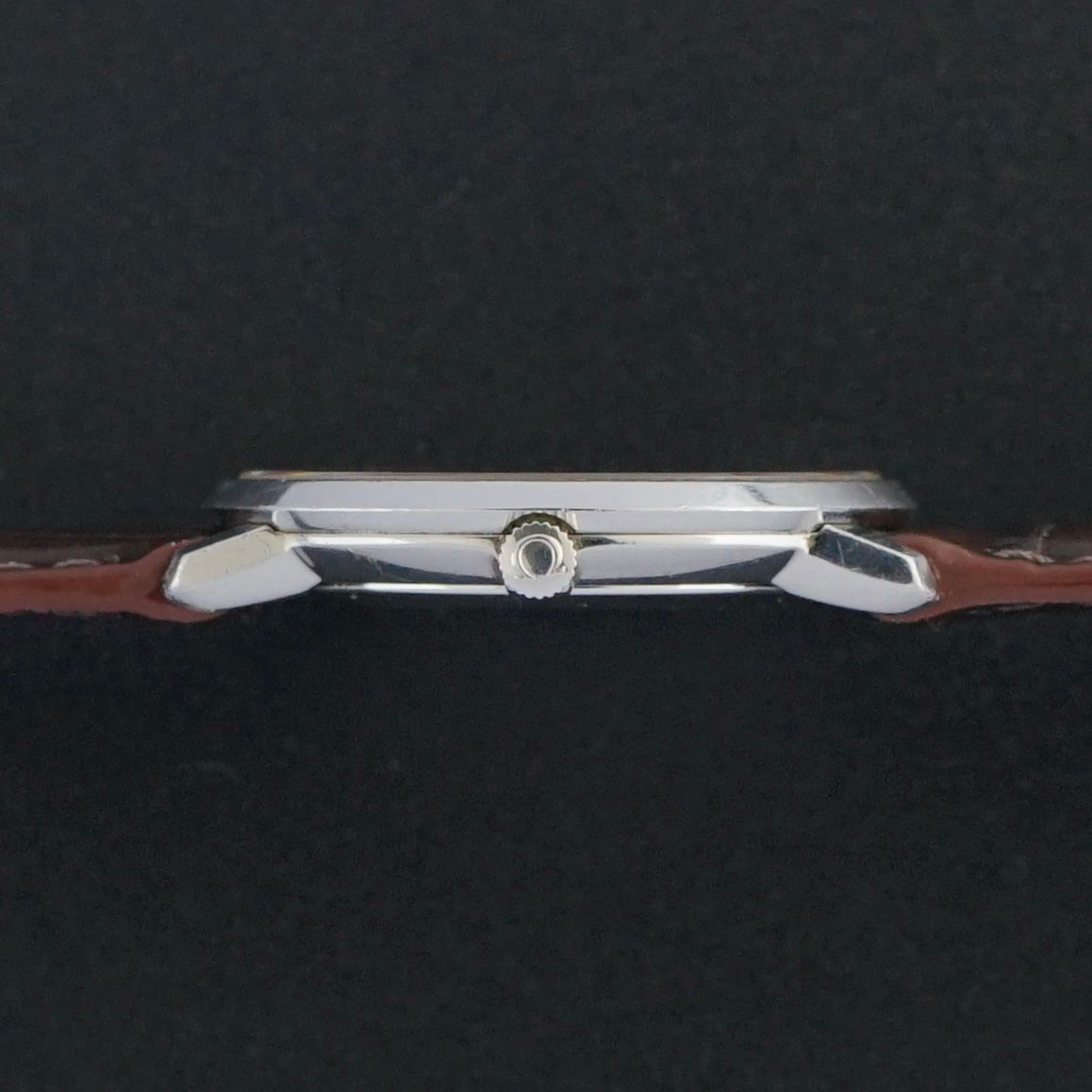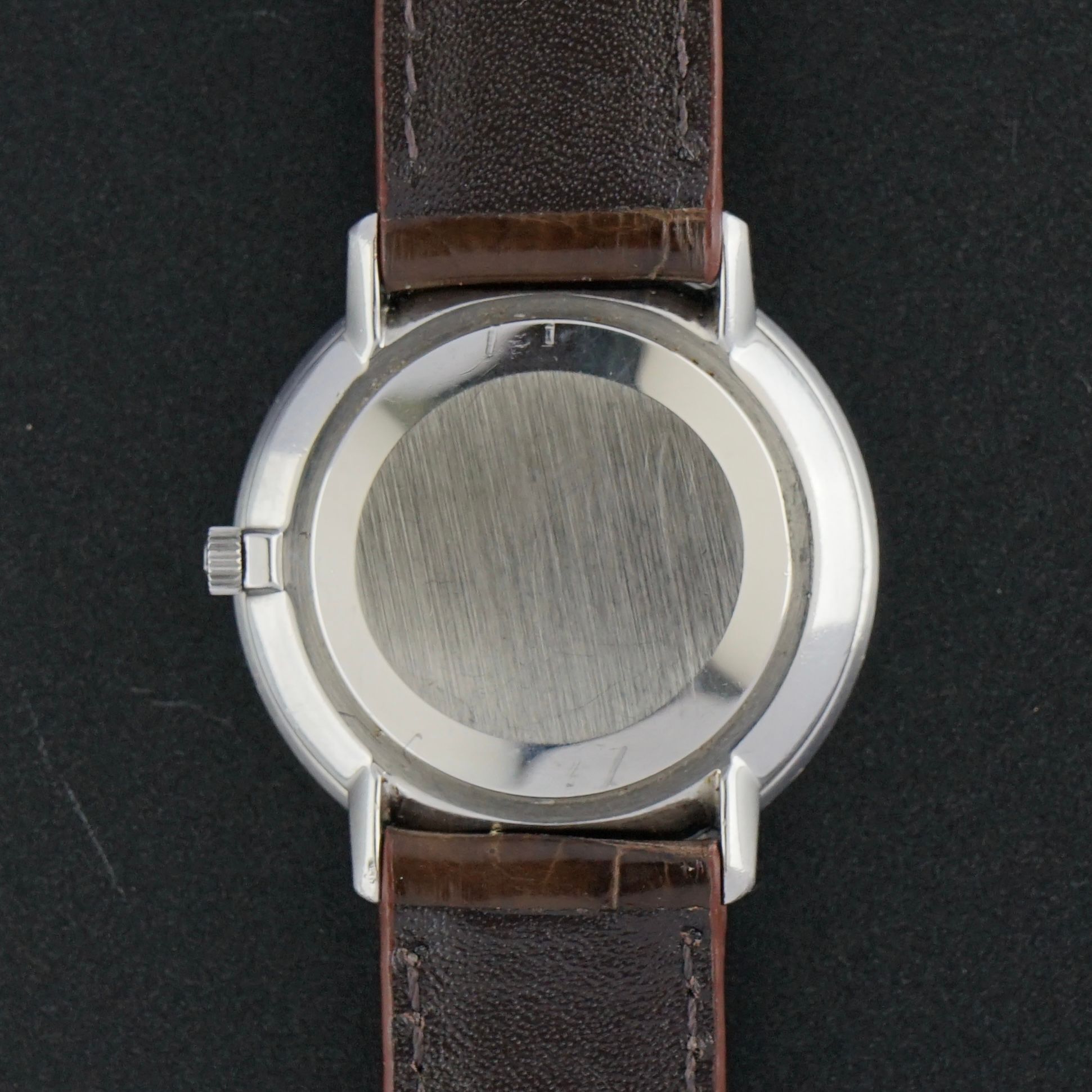 We have paired this piece with a top grain brown leather strap featuring a crocodile motif and a light glossy finish, complementing the refined aesthetic perfectly. Overall, the condition of this watch is very good, making it an excellent and relatively uncommon dress watch choice.