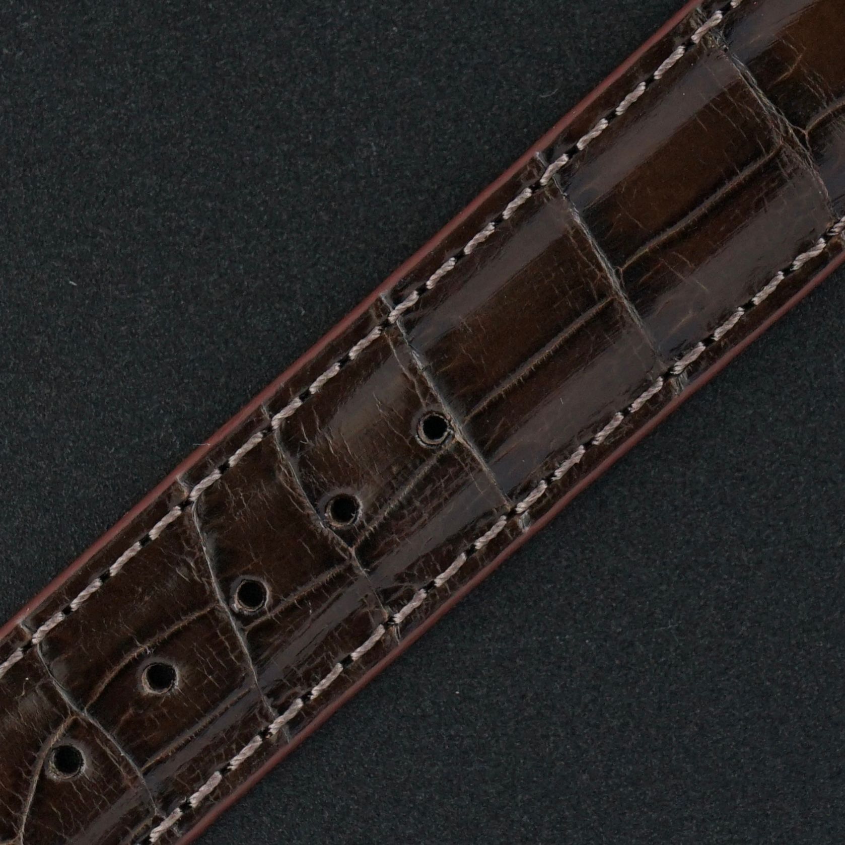 Strap: A top-grain brown leather strap with a crocodile motif. (Fits a 12 to 20cm wrist)